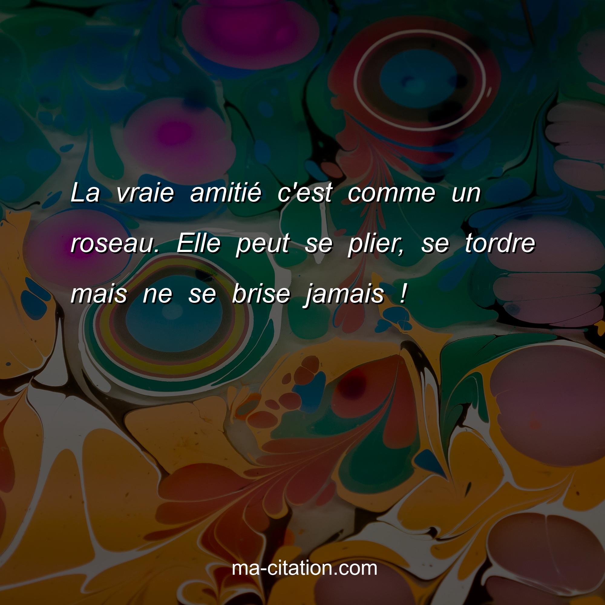 La vraie amitié c'est comme un roseau. Elle peut se plier, se tordre mais ne se brise jamais !