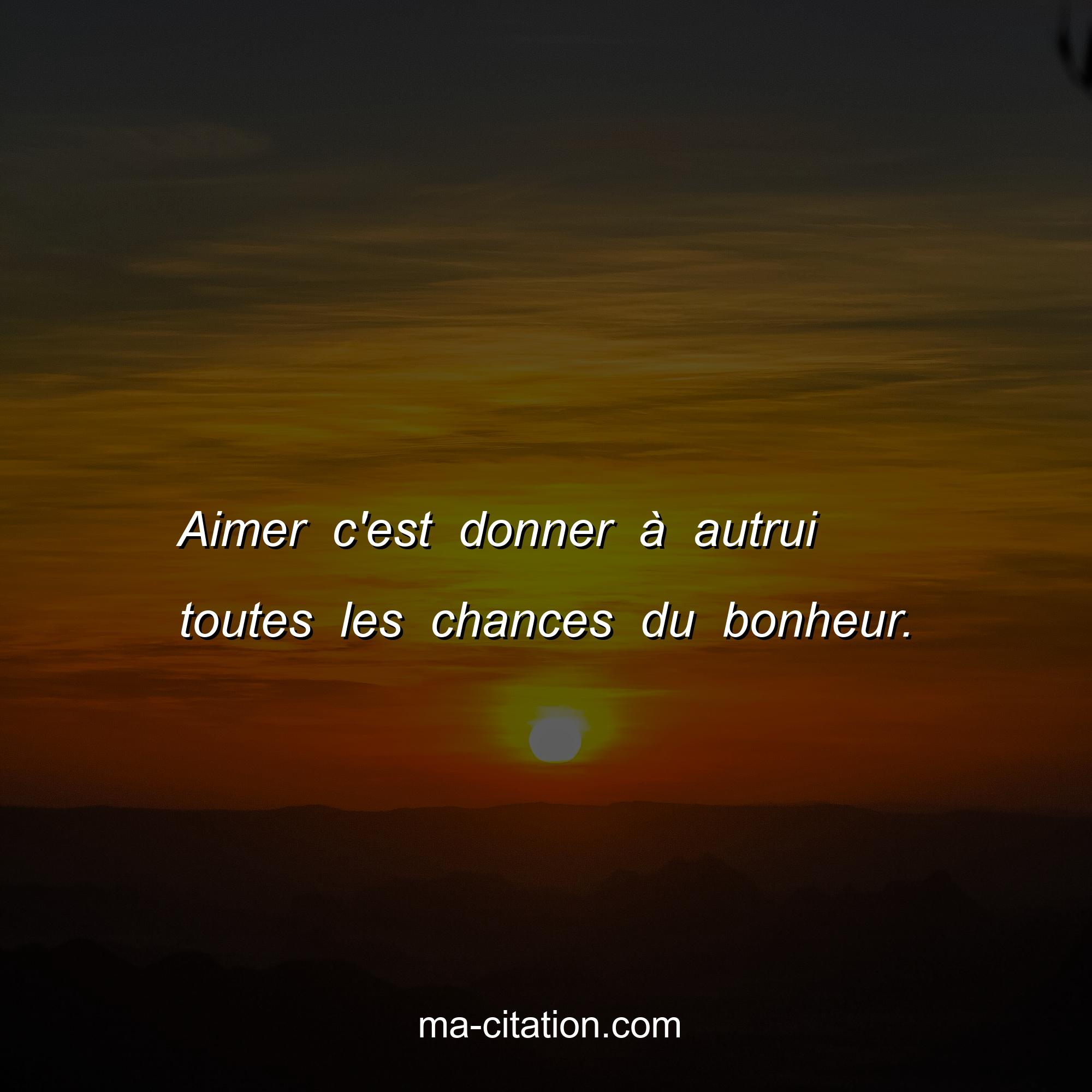 Citation sur l'amour :Aimer c'est donner à autrui toutes les chances du bonheur.