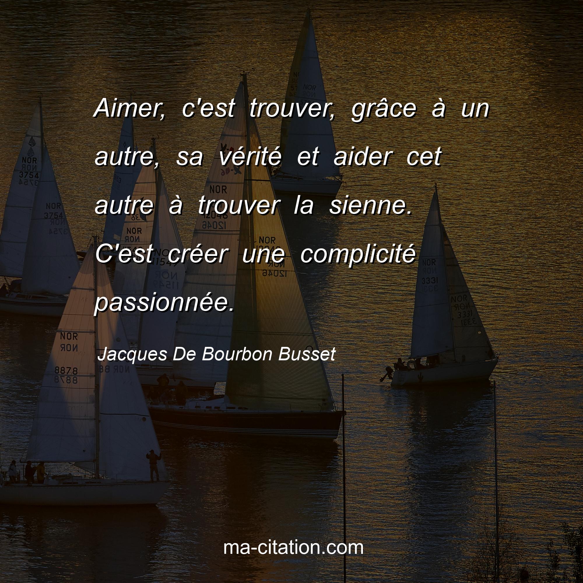 Citation sur l'amour de Jacques De Bourbon Busset :Aimer, c'est trouver, grâce à un autre, sa vérité et aider cet autre à trouver la sienne. C'est créer une complicité passionnée.