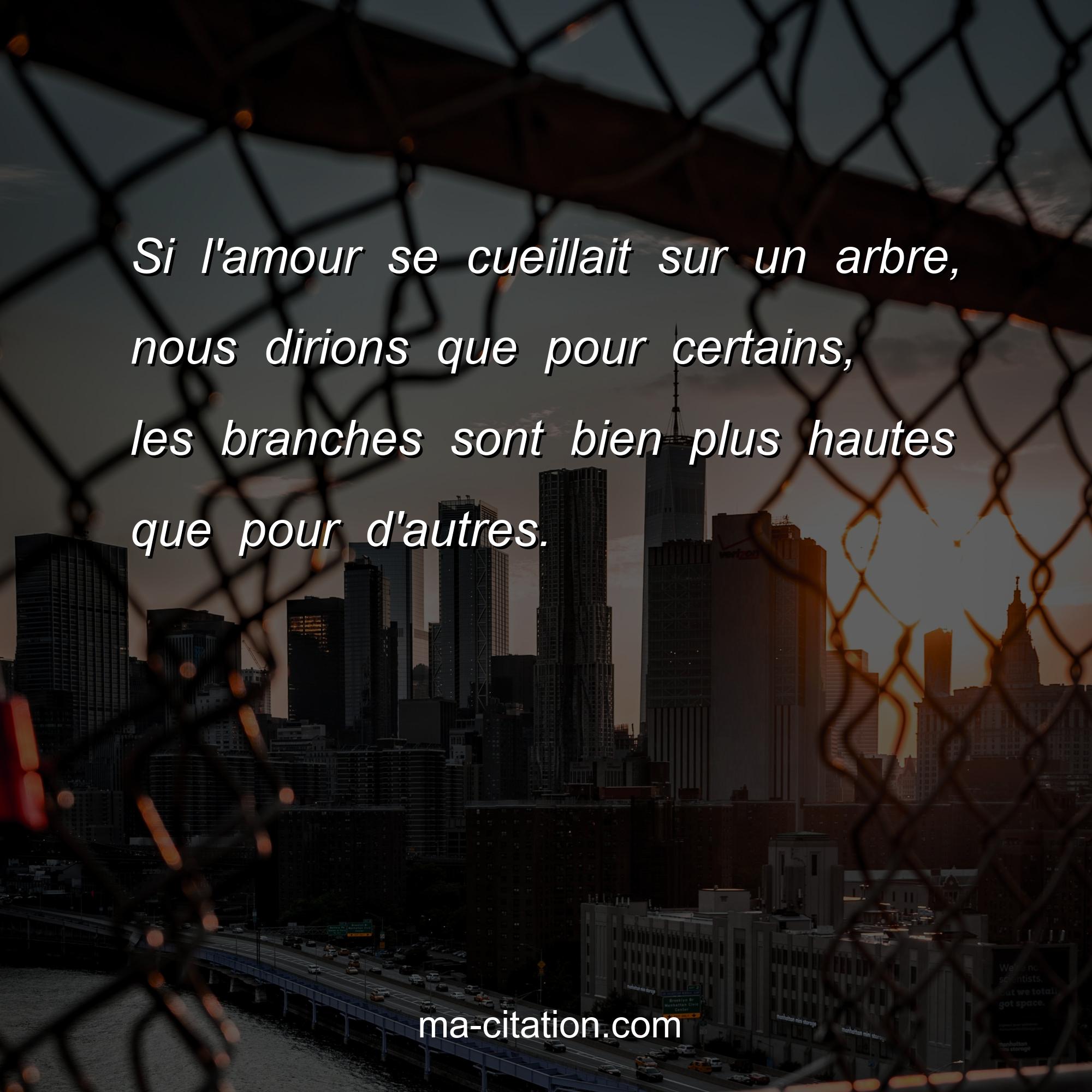 Citation sur l'amour :Si l'amour se cueillait sur un arbre, nous dirions que pour certains, les branches sont bien plus hautes que pour d'autres.