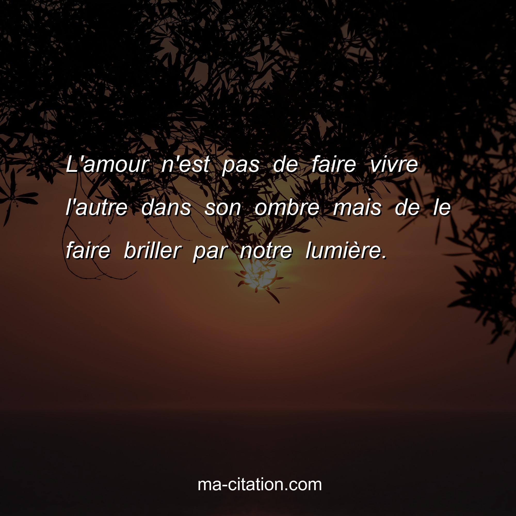 Citation sur l'amour :L'amour n'est pas de faire vivre l'autre dans son ombre mais de le faire briller par notre lumière.