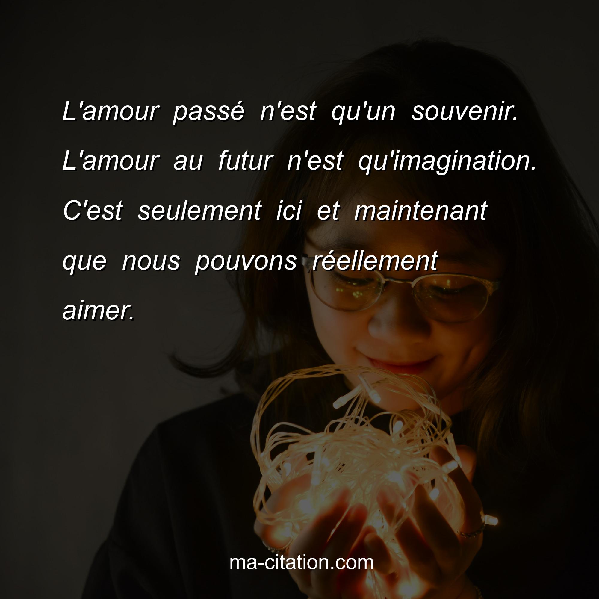 Citation sur l'amour :L'amour passé n'est qu'un souvenir. L'amour au futur n'est qu'imagination. C'est seulement ici et maintenant que nous pouvons réellement aimer.