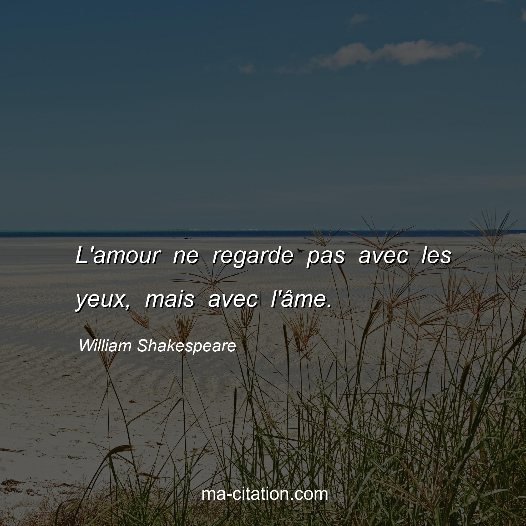Citation sur l'amour de William Shakespeare :L'amour ne regarde pas avec les yeux, mais avec l'âme.
