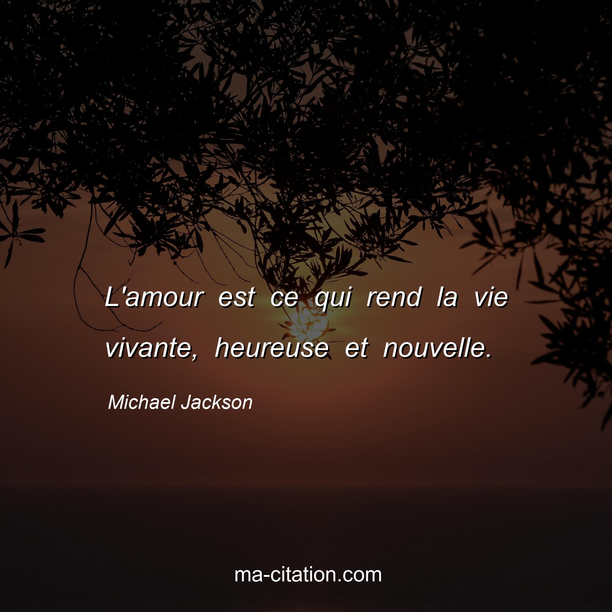 Michael Jackson est l'auteur de la citation sur l'amour "L'amour est ce qui rend la vie vivante, heureuse et nouvelle.".