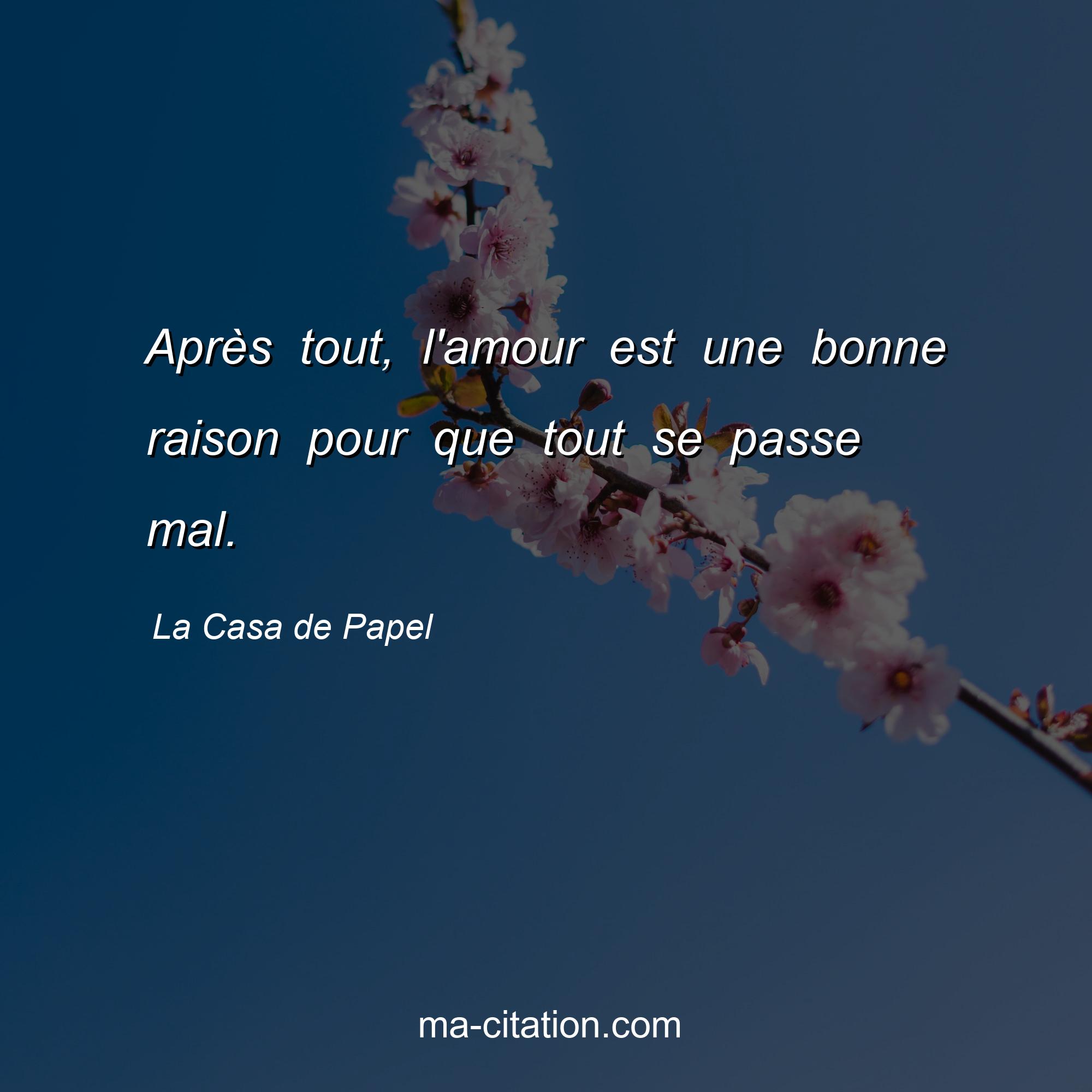 La Casa de Papel est l'auteur de la citation sur l'amour "Après tout, l'amour est une bonne raison pour que tout se passe mal.".