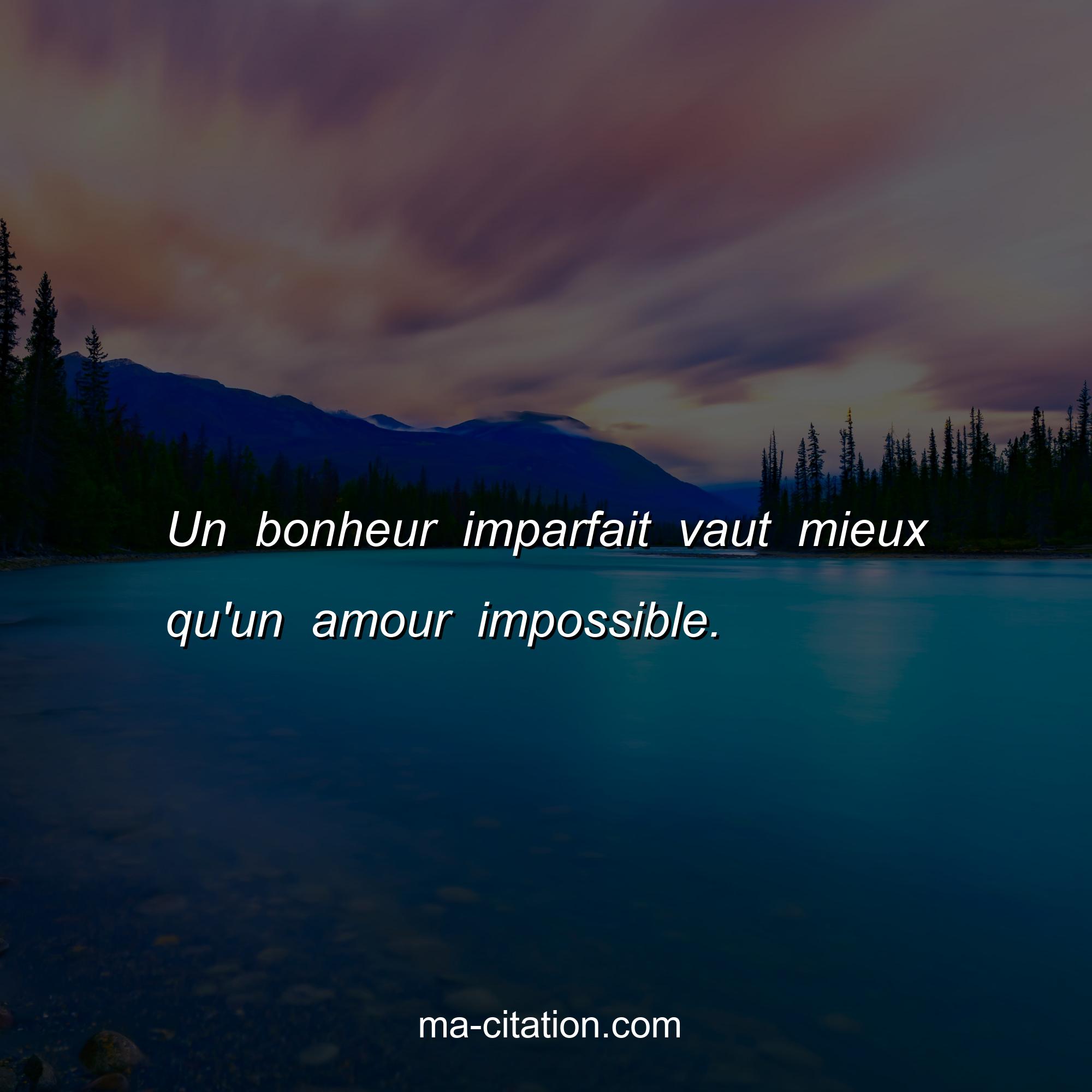 Citation sur l'amour :Un bonheur imparfait vaut mieux qu'un amour impossible.
