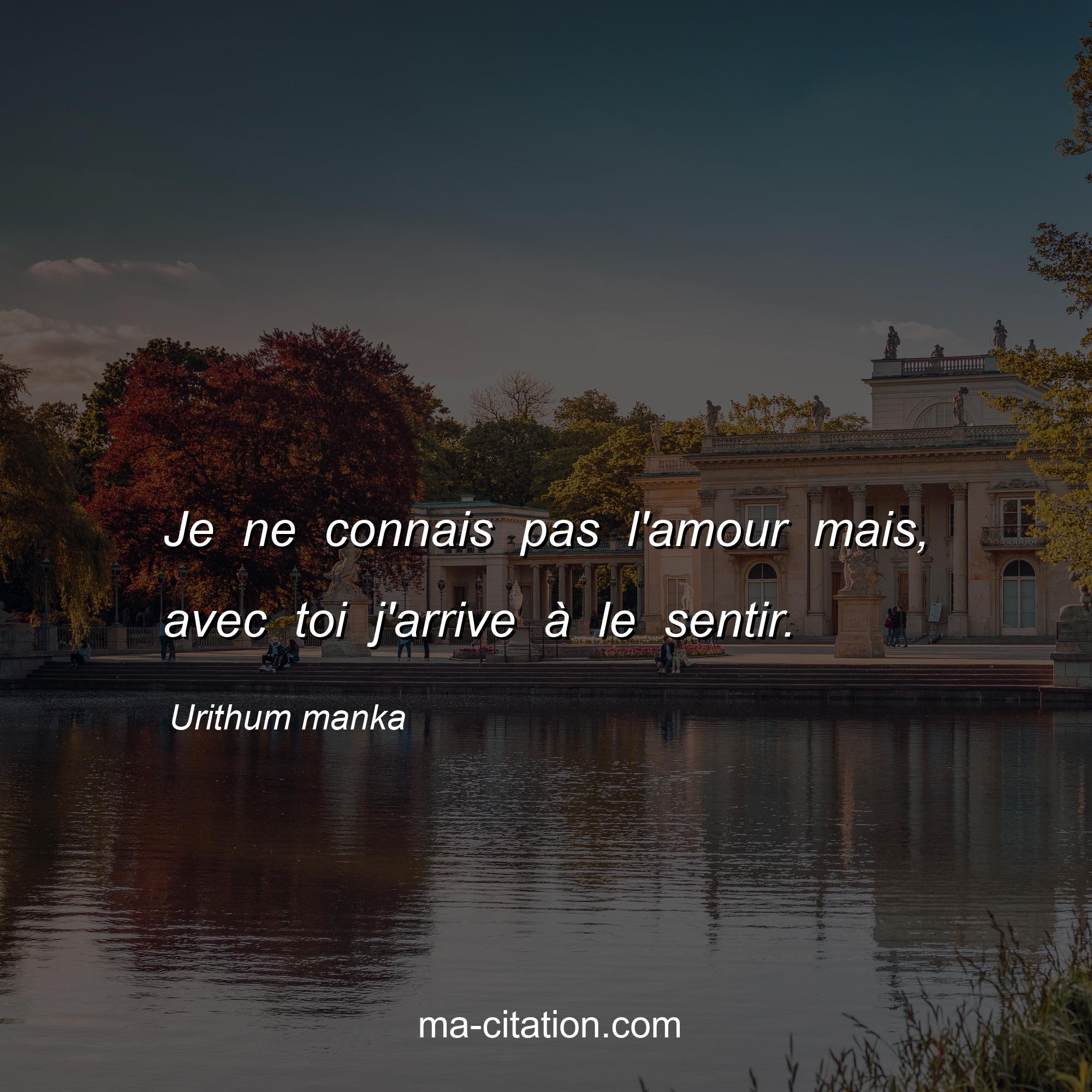 Urithum manka est l'auteur de la citation sur l'amour "Je ne connais pas l'amour mais, avec toi j'arrive à le sentir.".