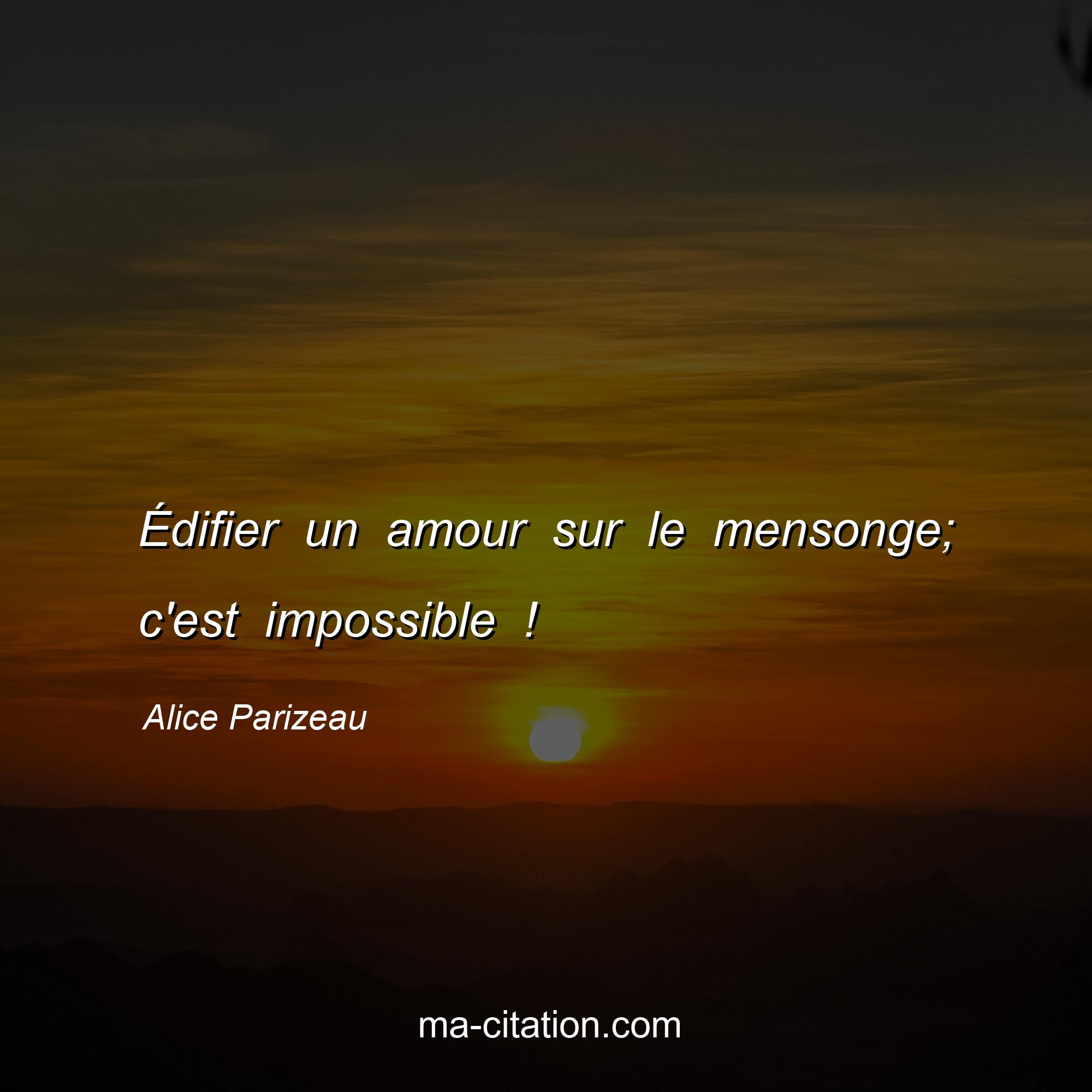Citation sur l'amour d'Alice Parizeau :Édifier un amour sur le mensonge; c'est impossible !