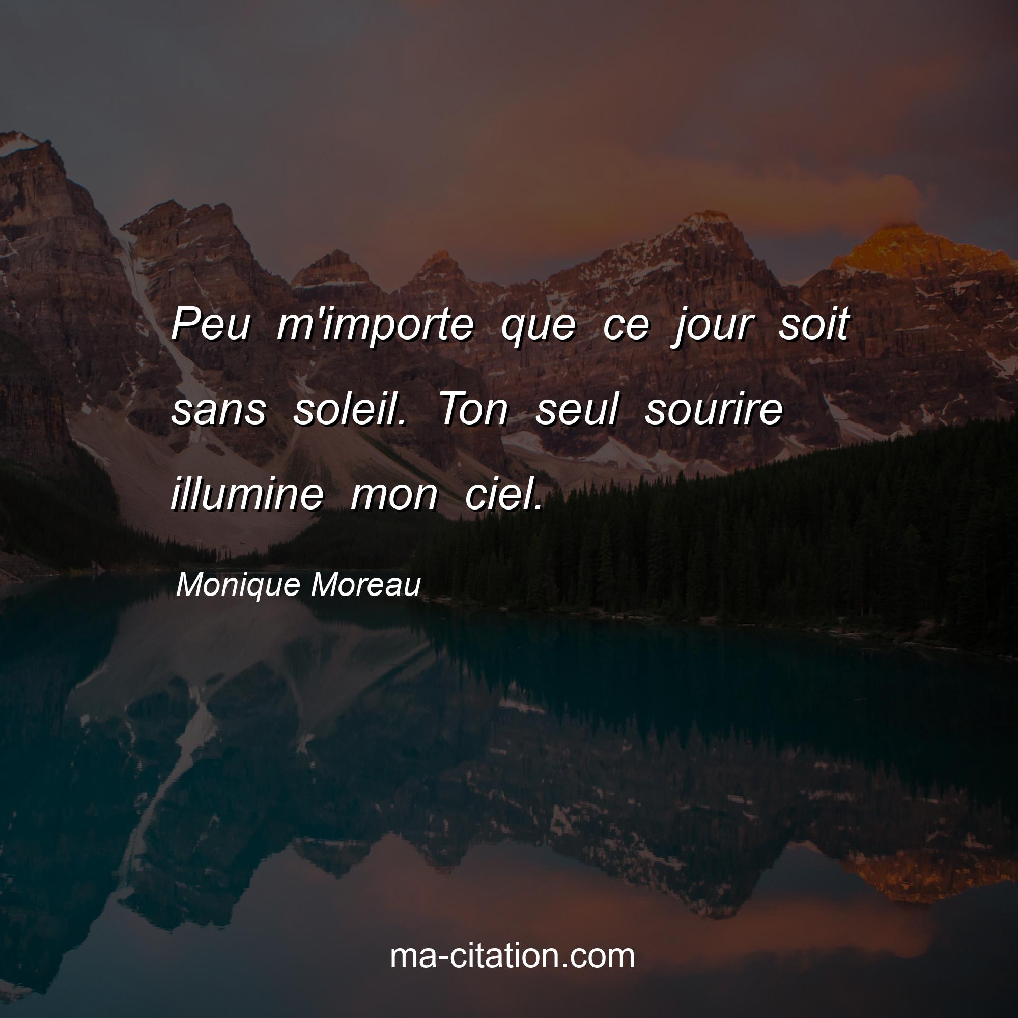Monique Moreau est l'auteur de la citation sur l'amour "Peu m'importe que ce jour soit sans soleil. Ton seul sourire illumine mon ciel.".