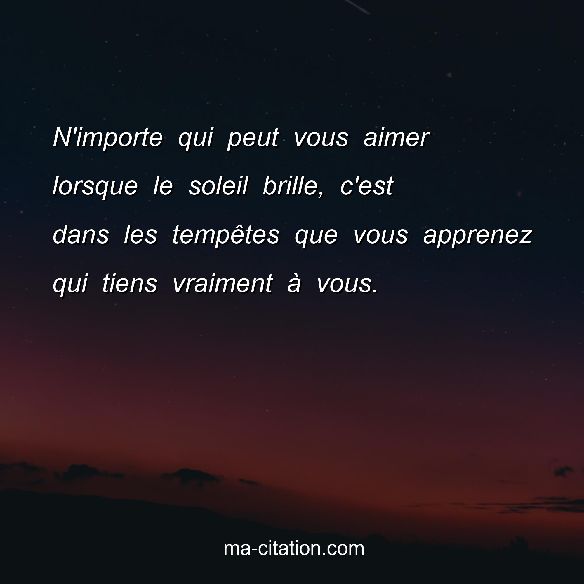 N'importe qui peut vous aimer lorsque le soleil brille, c'est dans les tempêtes que vous apprenez qui tiens vraiment à vous.