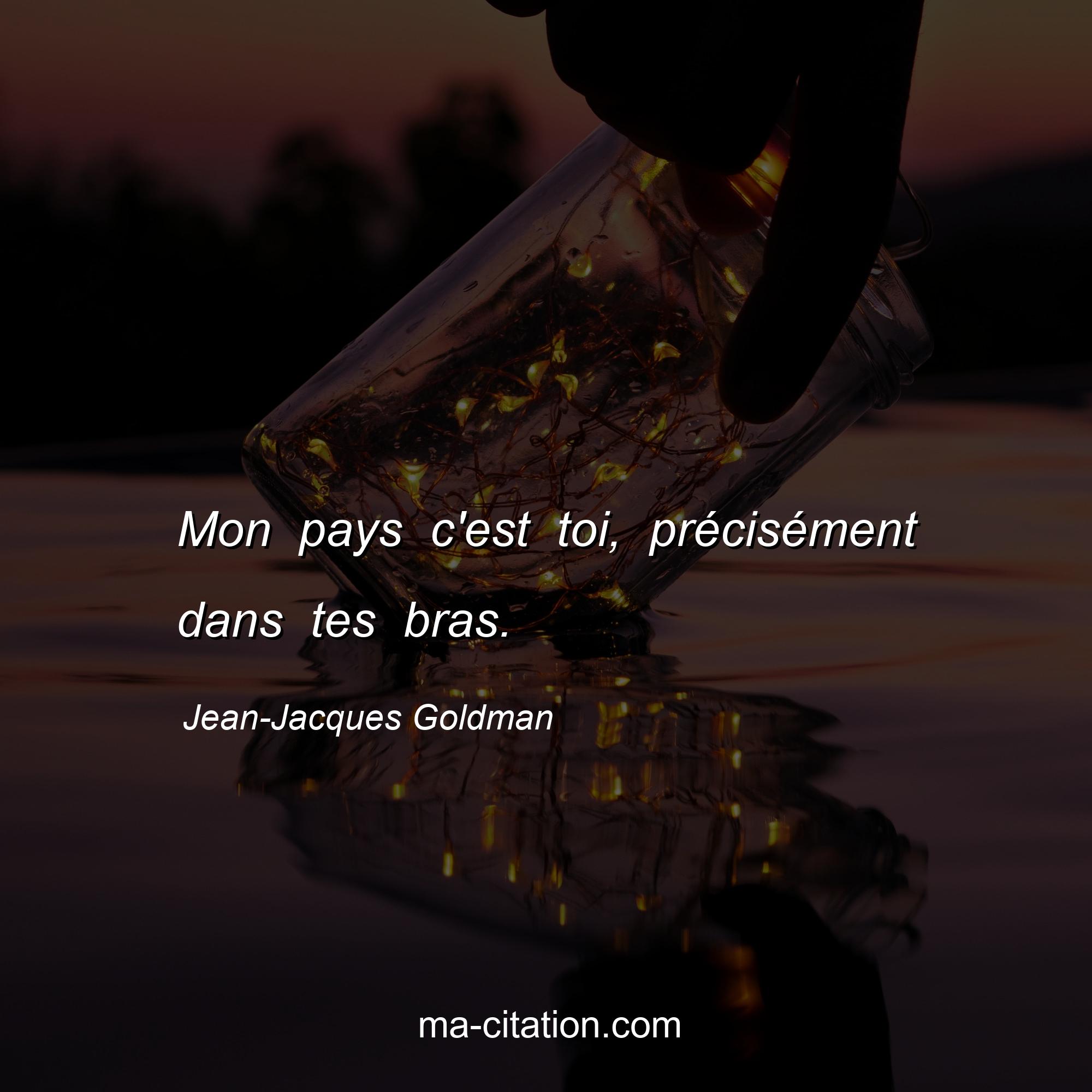 Citation sur l'amour de Jean-Jacques Goldman :Mon pays c'est toi, précisément dans tes bras.