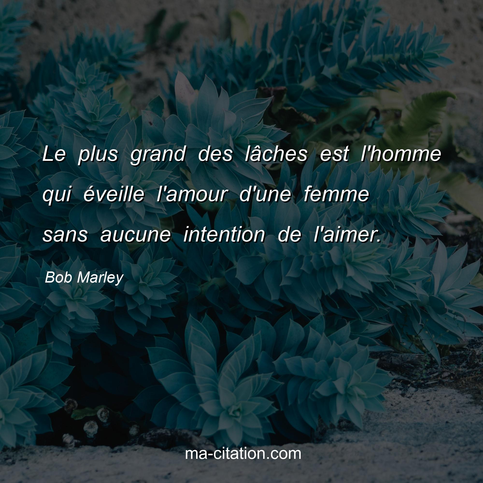 Bob Marley est l'auteur de la citation sur l'amour "Le plus grand des lâches est l'homme qui éveille l'amour d'une femme sans aucune intention de l'aimer.".