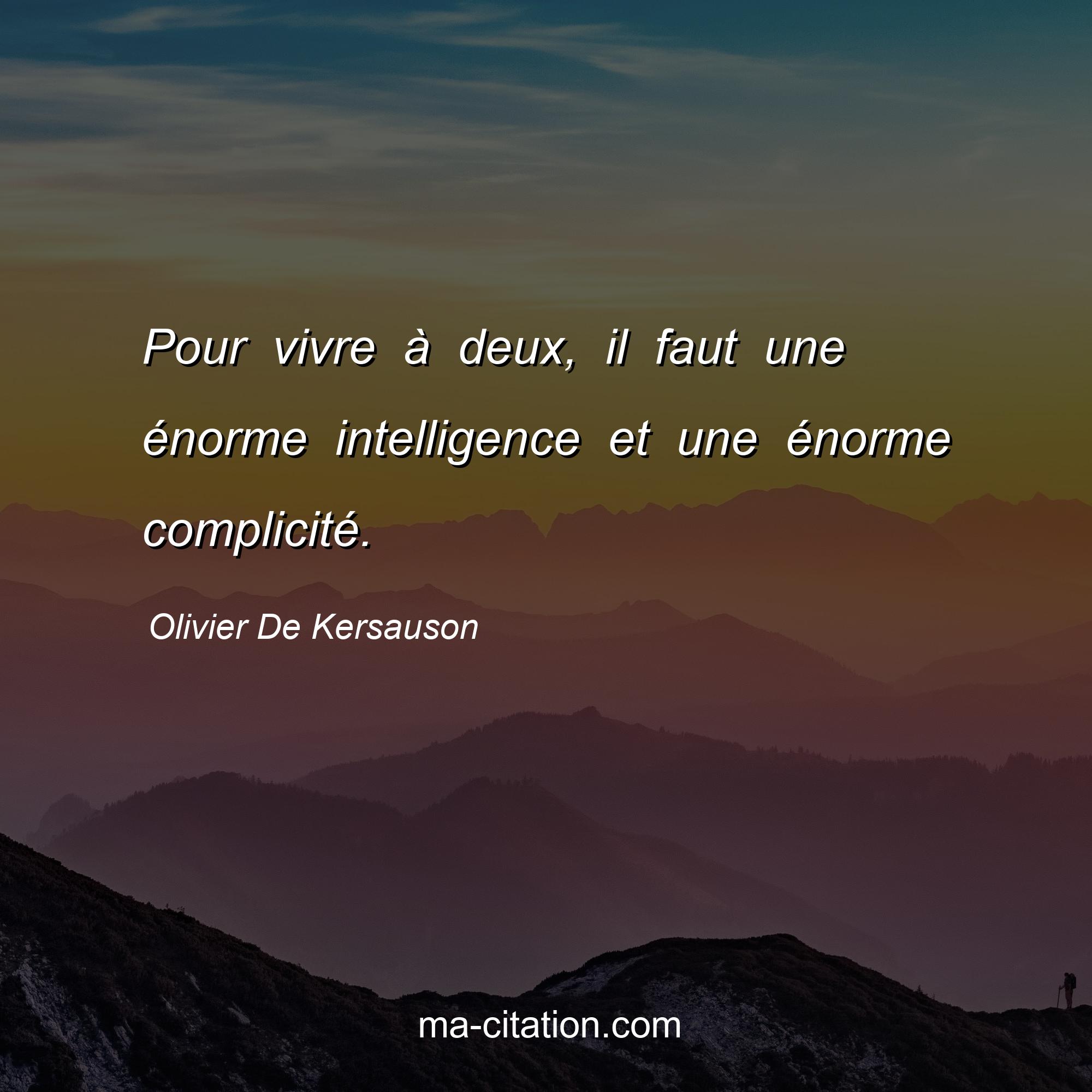 Citation sur l'amour d'Olivier De Kersauson :Pour vivre à deux, il faut une énorme intelligence et une énorme complicité.