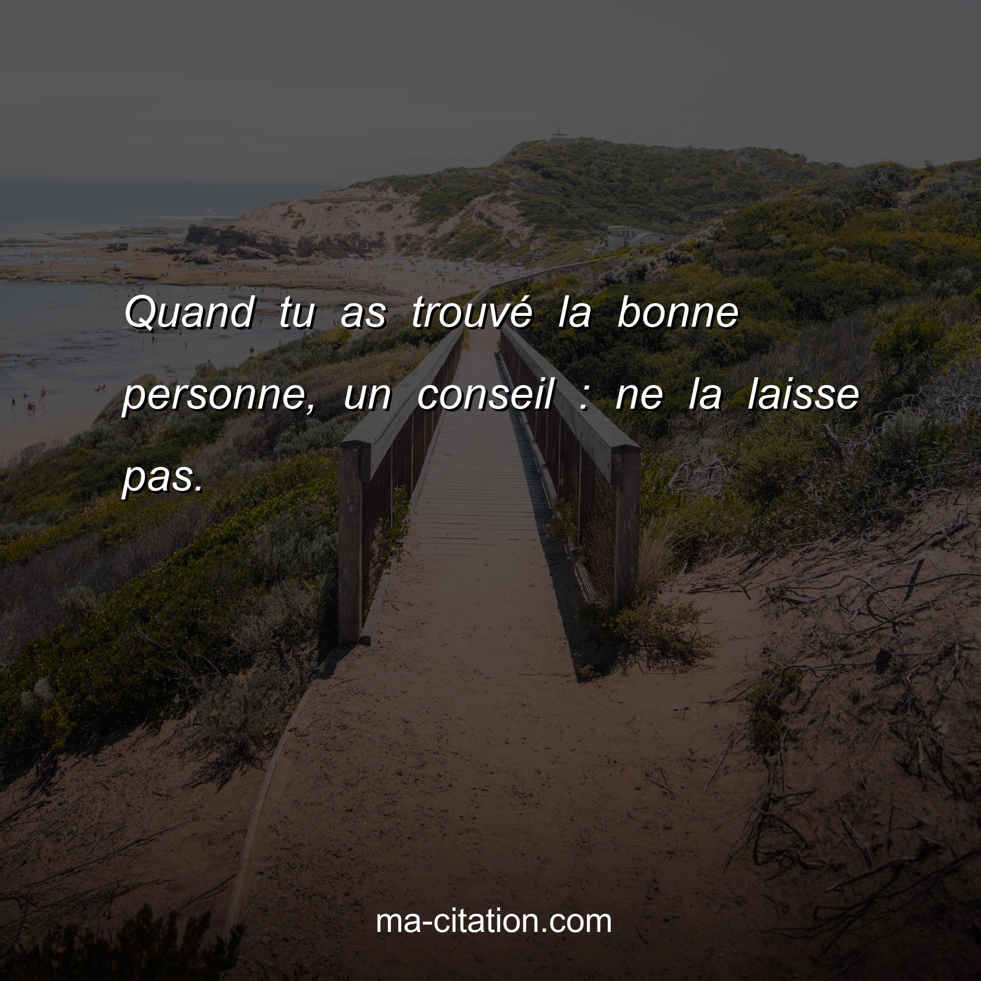 Citation sur l'amour :Quand tu as trouvé la bonne personne, un conseil : ne la laisse pas.