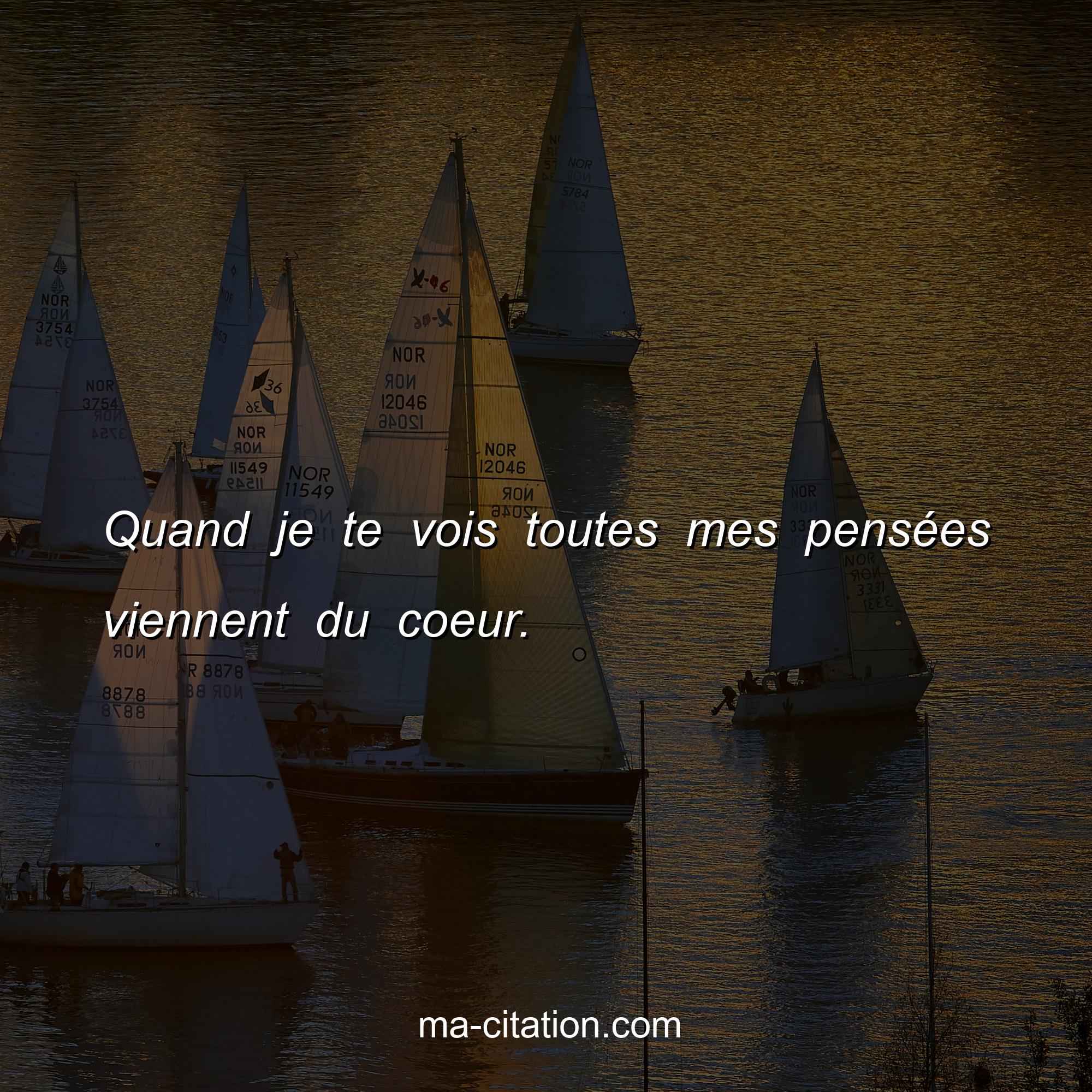 Citation sur l'amour :Quand je te vois toutes mes pensées viennent du coeur.
