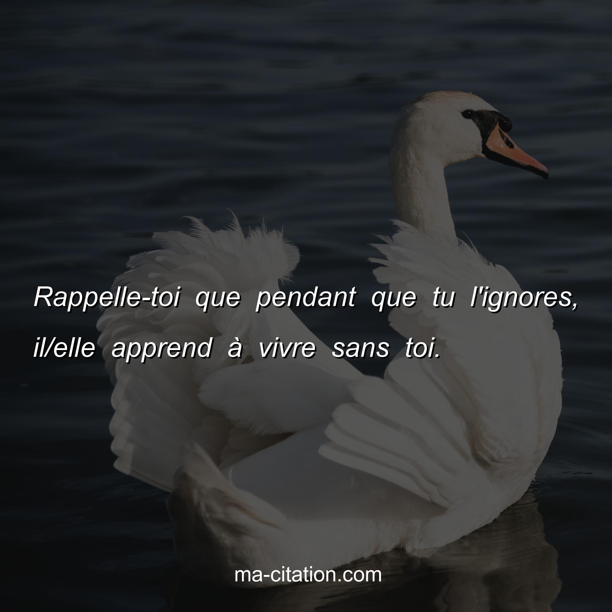 Rappelle-toi que pendant que tu l'ignores, il/elle apprend à vivre sans toi.