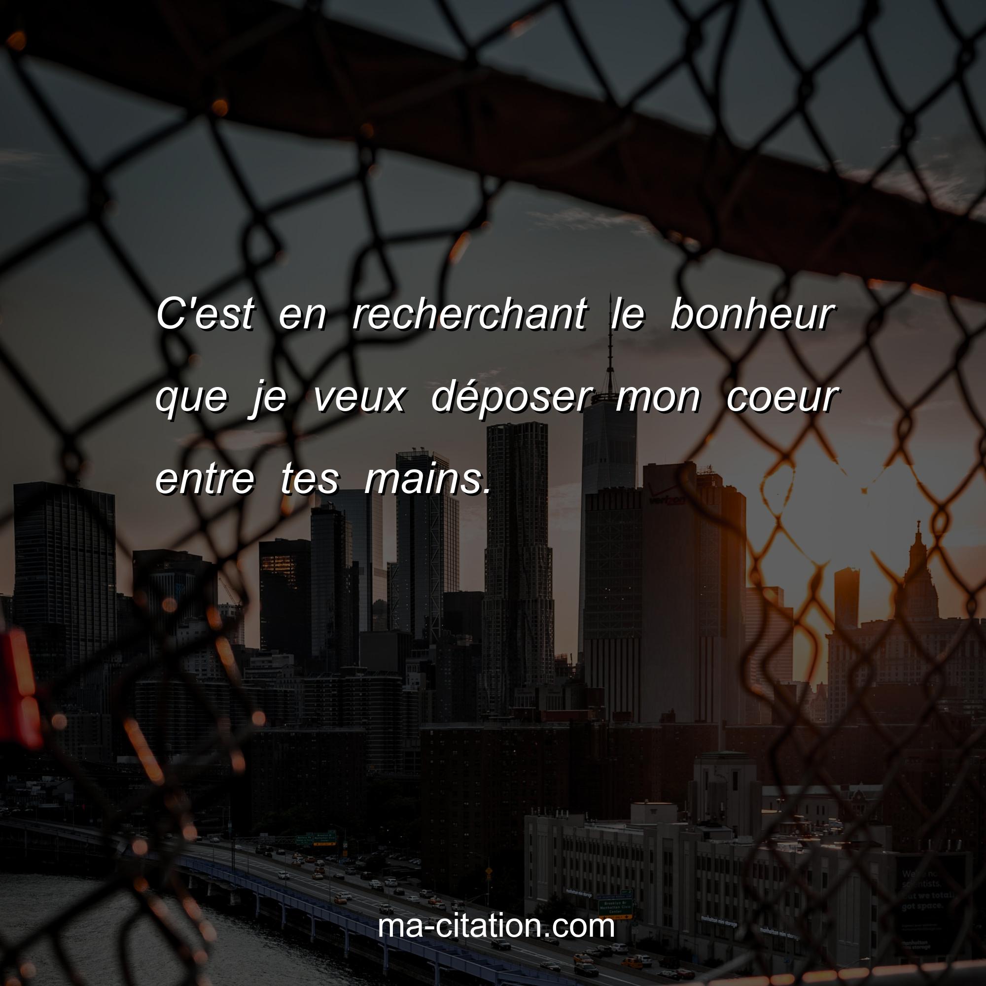 Citation sur l'amour :C'est en recherchant le bonheur que je veux déposer mon coeur entre tes mains.
