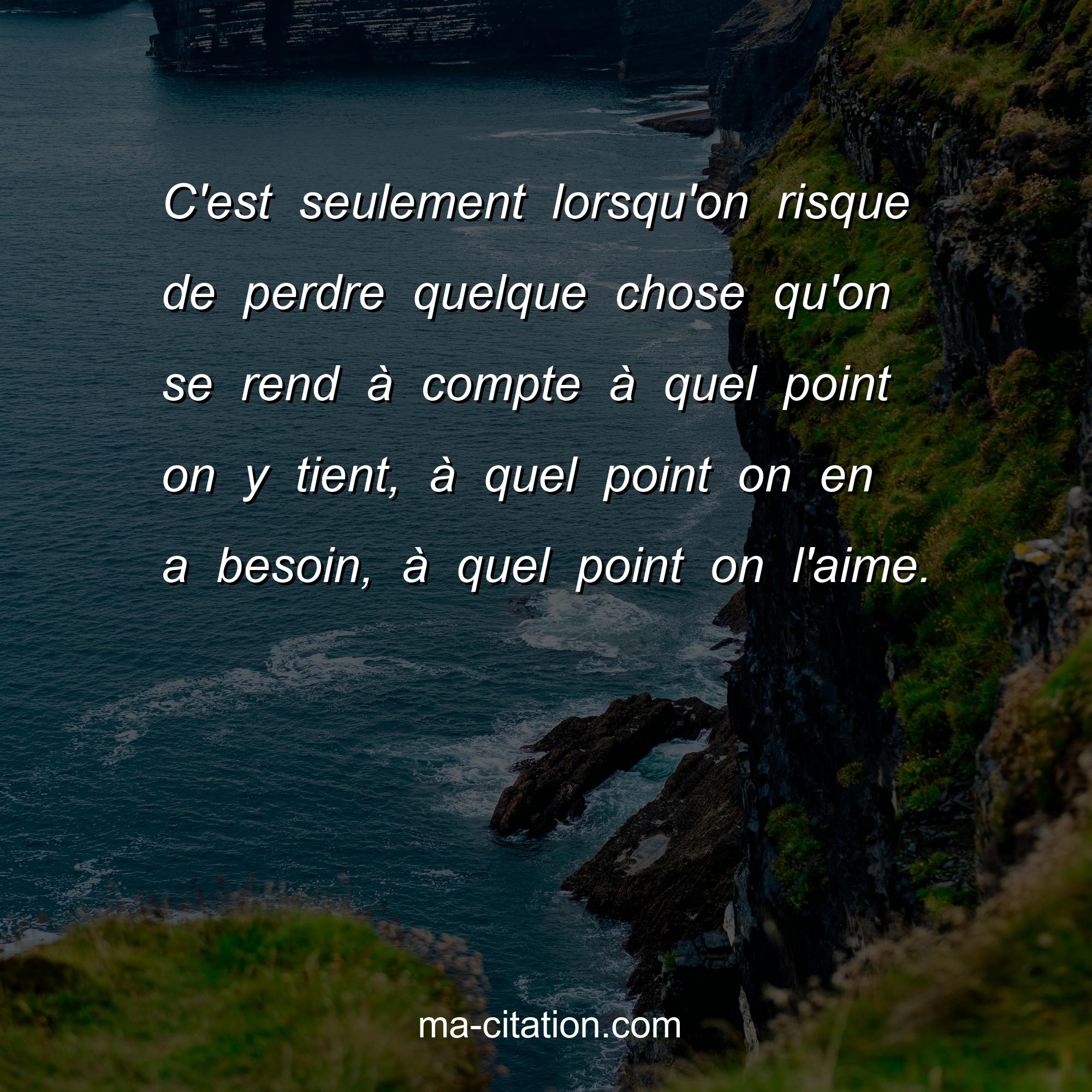 Citation sur l'amour :C'est seulement lorsqu'on risque de perdre quelque chose qu'on se rend à compte à quel point on y tient, à quel point on en a besoin, à quel point on l'aime.