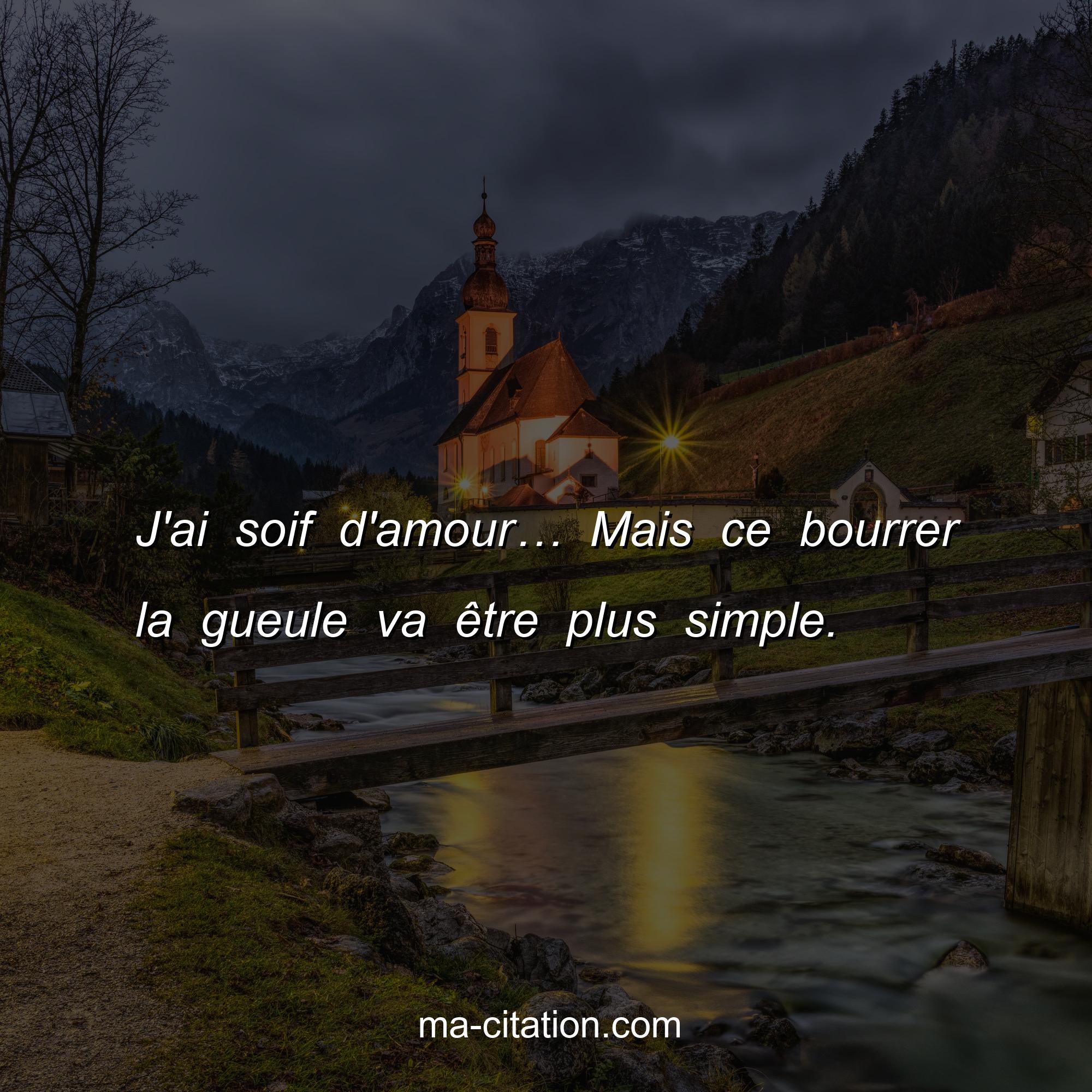 Citation sur l'amour :J'ai soif d'amour… Mais ce bourrer la gueule va être plus simple.