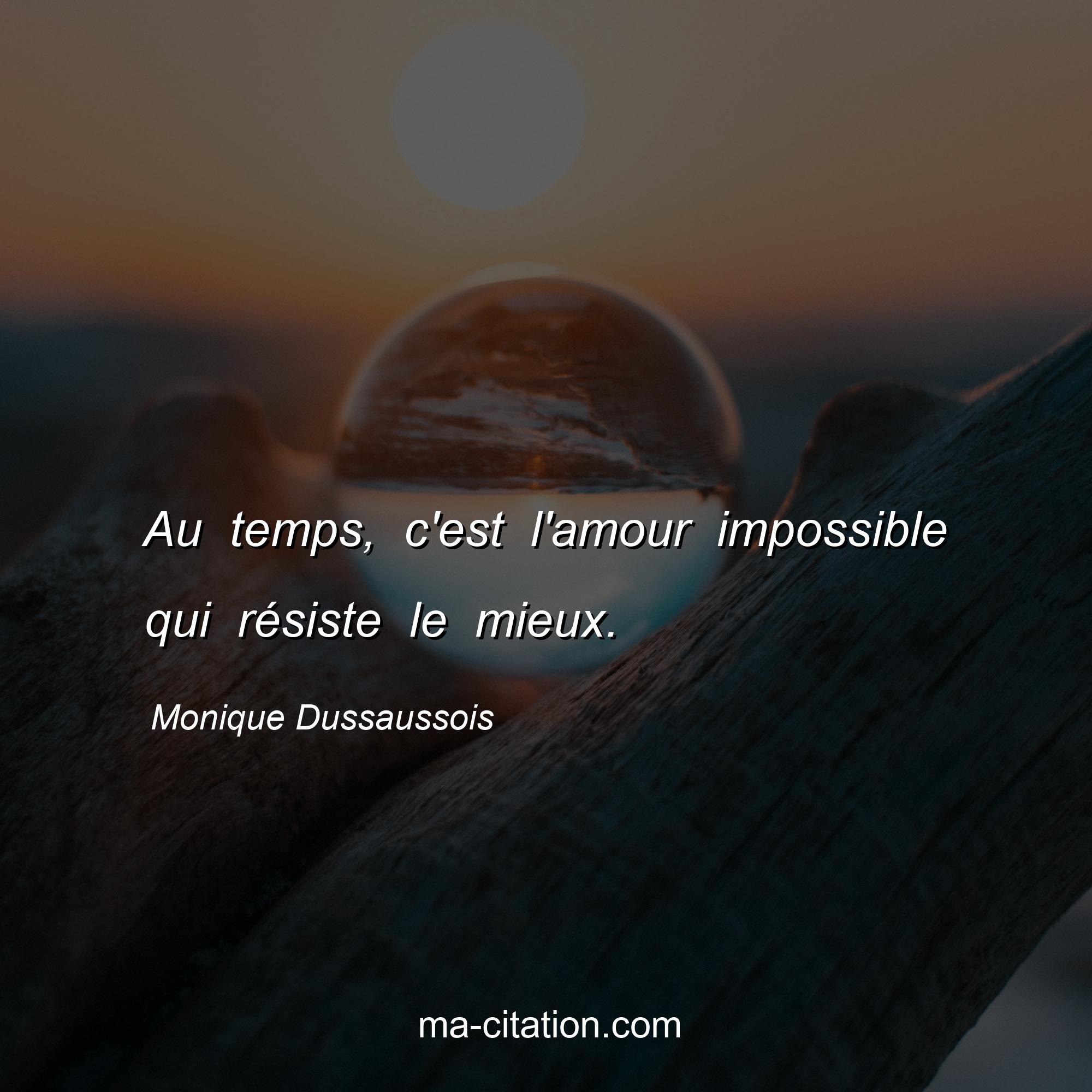 Citation sur l'amour de Monique Dussaussois :Au temps, c'est l'amour impossible qui résiste le mieux.