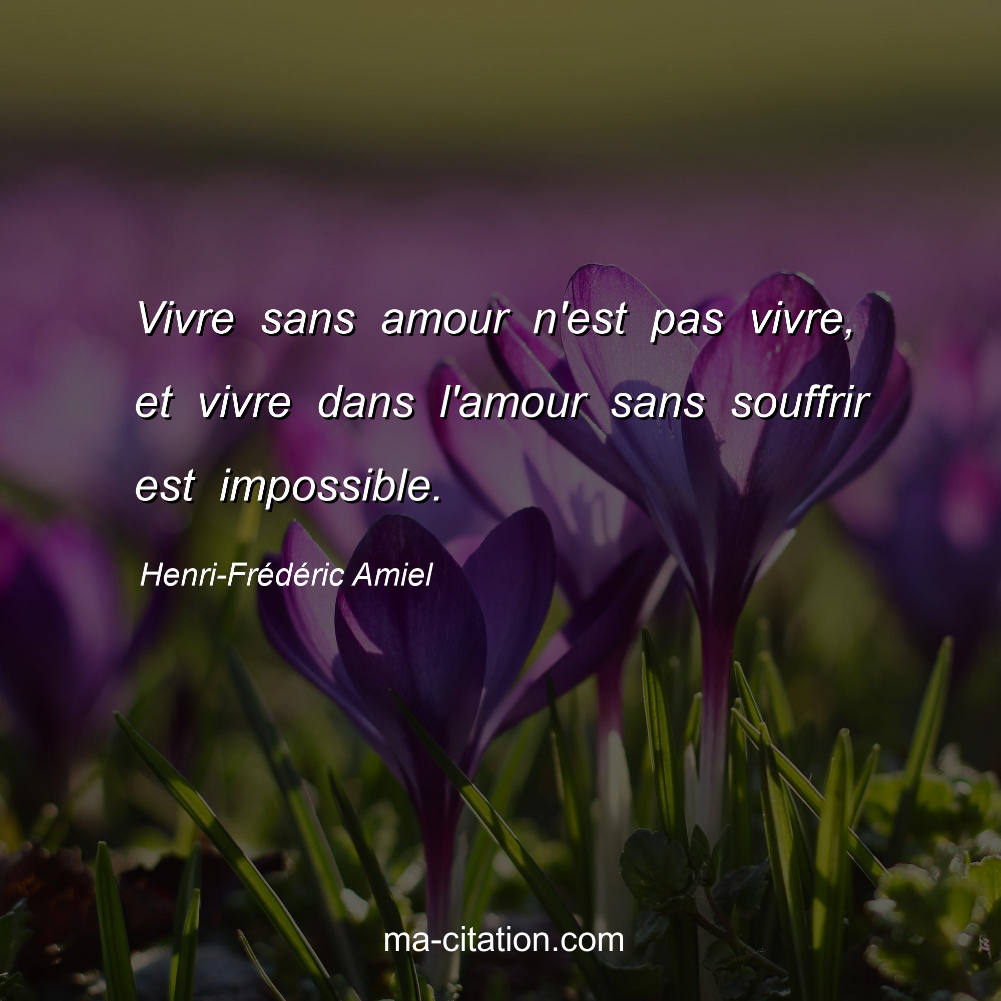 Citation sur l'amour de Henri-Frédéric Amiel :Vivre sans amour n'est pas vivre, et vivre dans l'amour sans souffrir est impossible.