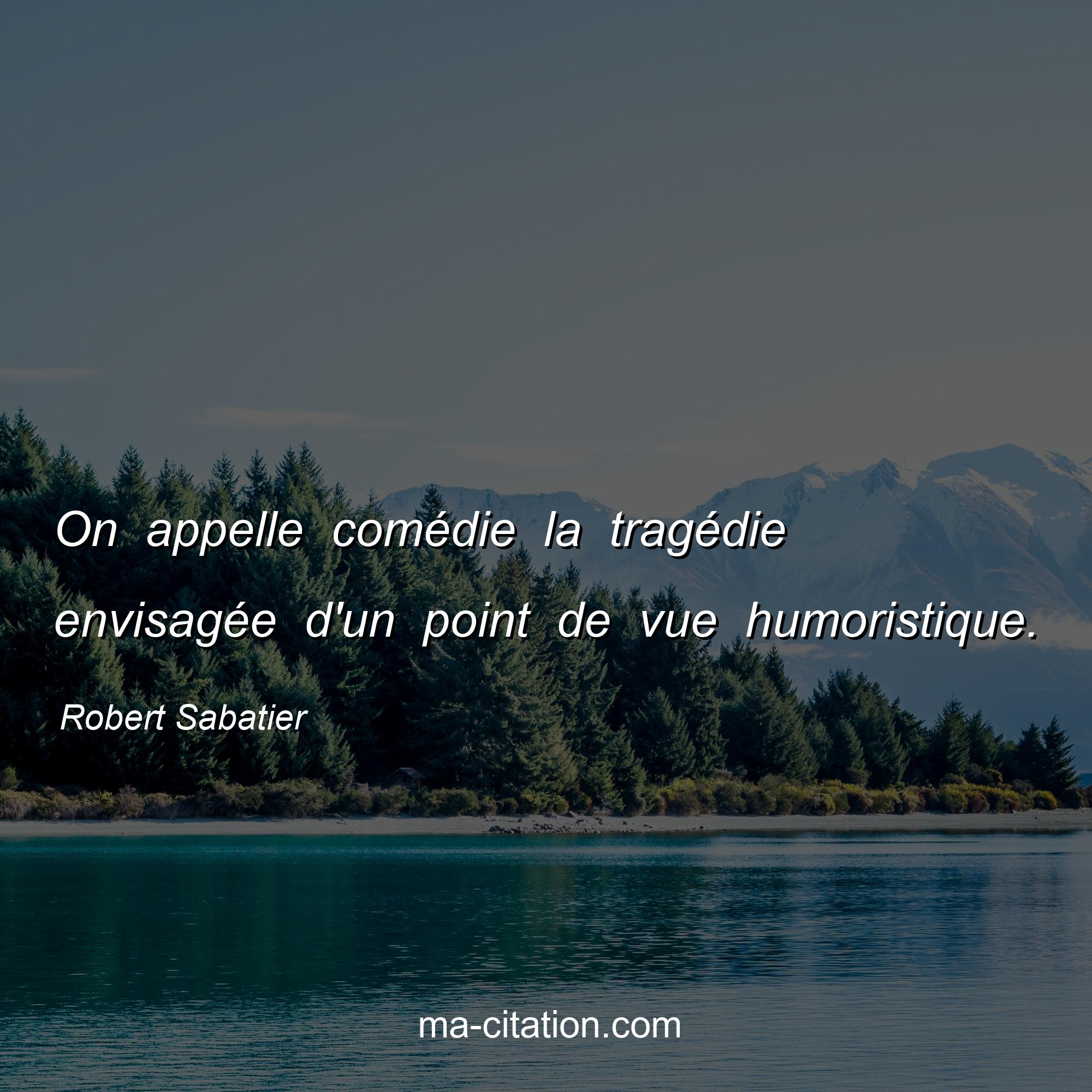 Robert Sabatier est l'auteur de la citation drôles "On appelle comédie la tragédie envisagée d'un point de vue humoristique.".