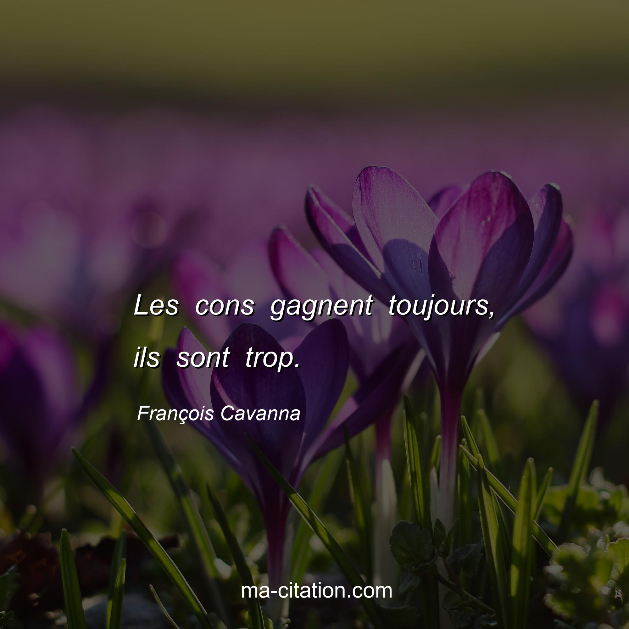 Citation drôles de François Cavanna :Les cons gagnent toujours, ils sont trop.