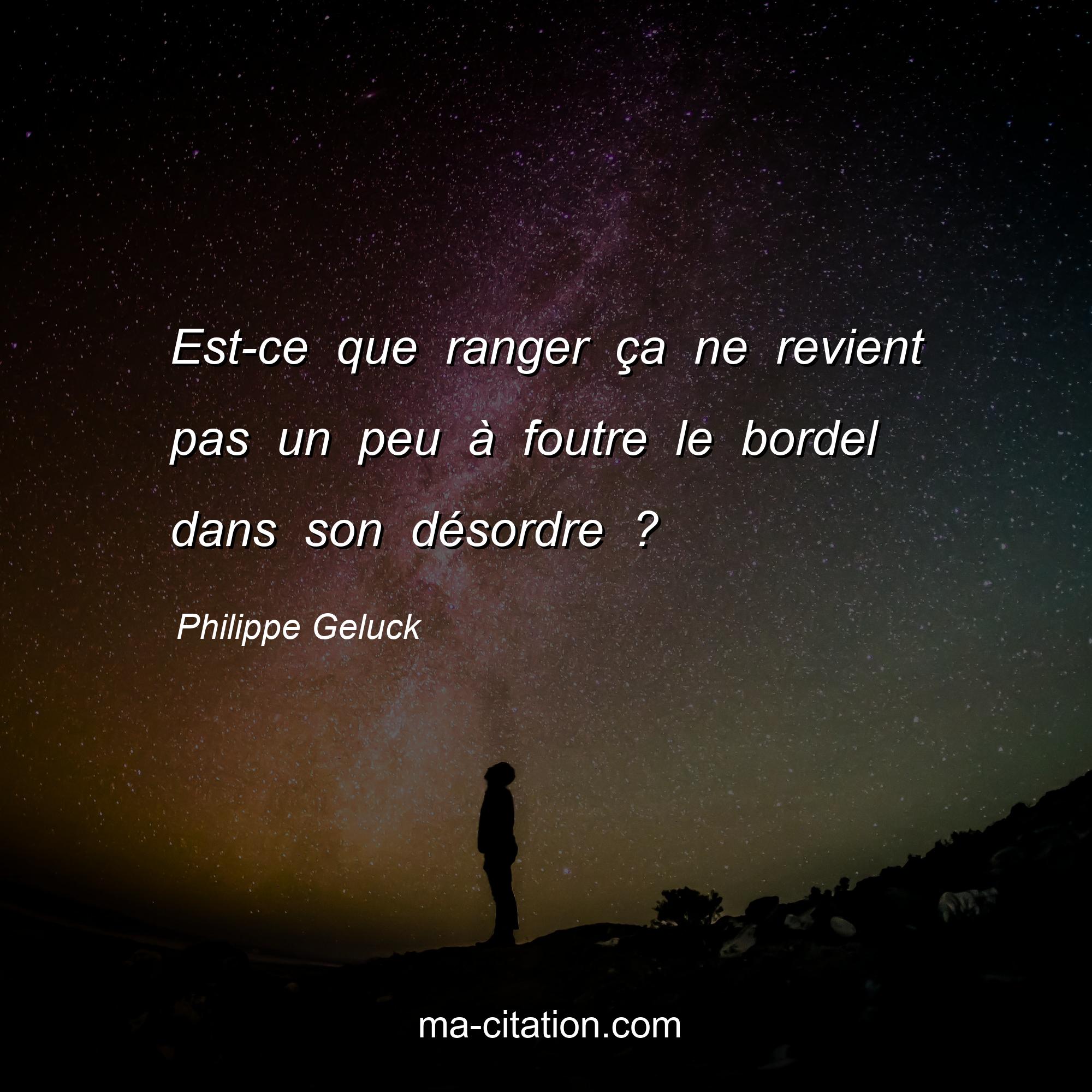 Citation drôles de Philippe Geluck :Est-ce que ranger ça ne revient pas un peu à foutre le bordel dans son désordre ?