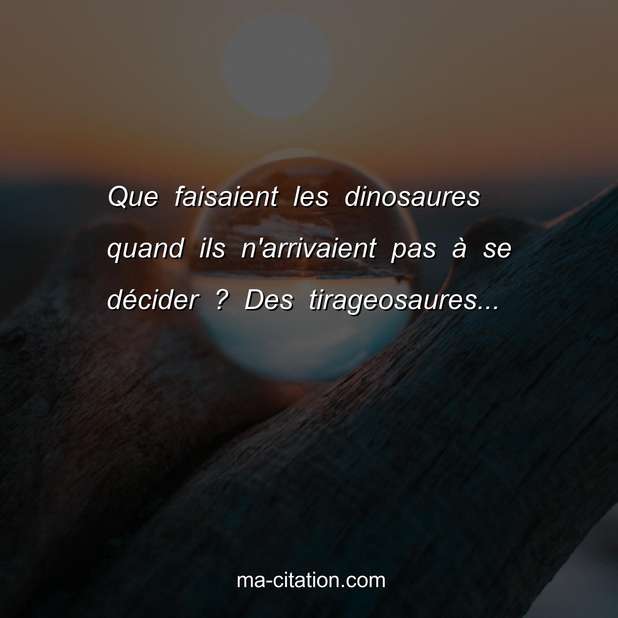 Citation drôles :Que faisaient les dinosaures quand ils n'arrivaient pas à se décider ? Des tirageosaures...