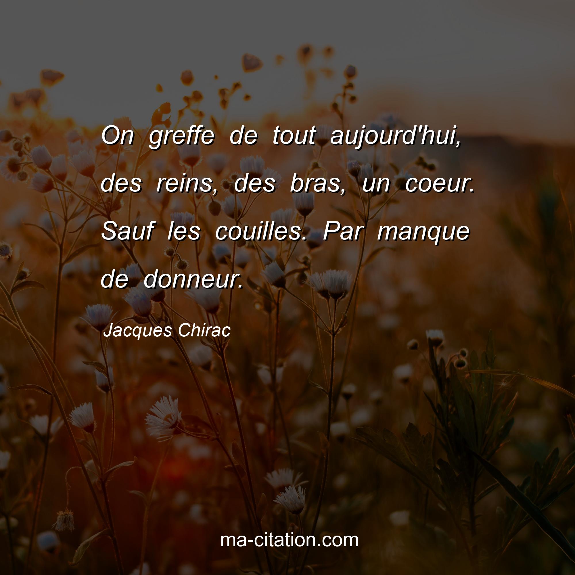Citation drôles de Jacques Chirac :On greffe de tout aujourd'hui, des reins, des bras, un coeur. Sauf les couilles. Par manque de donneur.