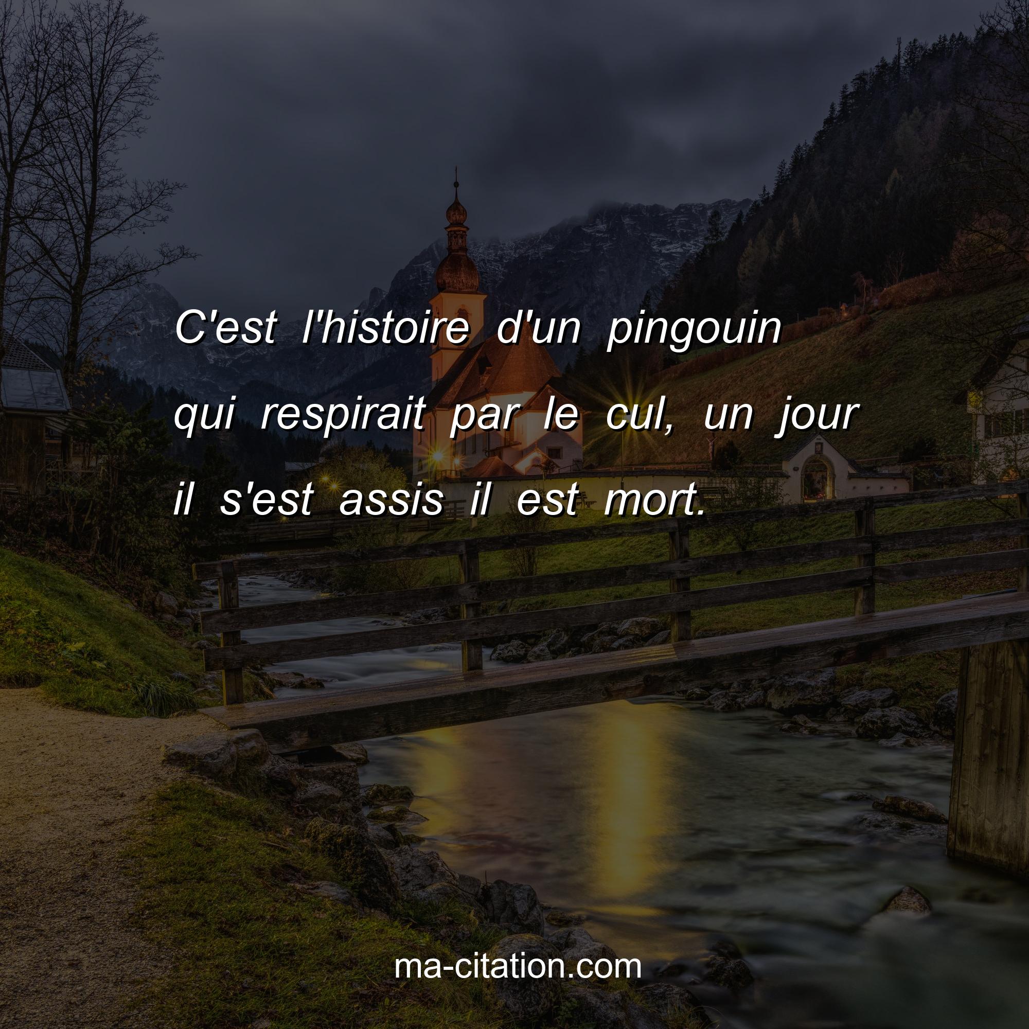 Citation drôles :C'est l'histoire d'un pingouin qui respirait par le cul, un jour il s'est assis il est mort.