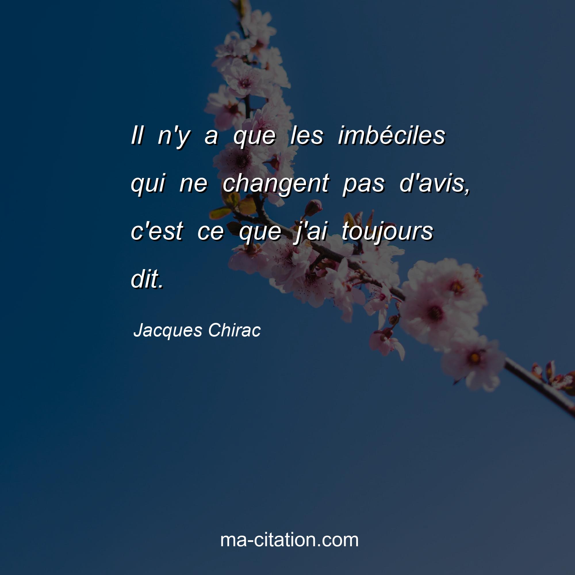 Jacques Chirac est l'auteur de la citation drôles "Il n'y a que les imbéciles qui ne changent pas d'avis, c'est ce que j'ai toujours dit.".