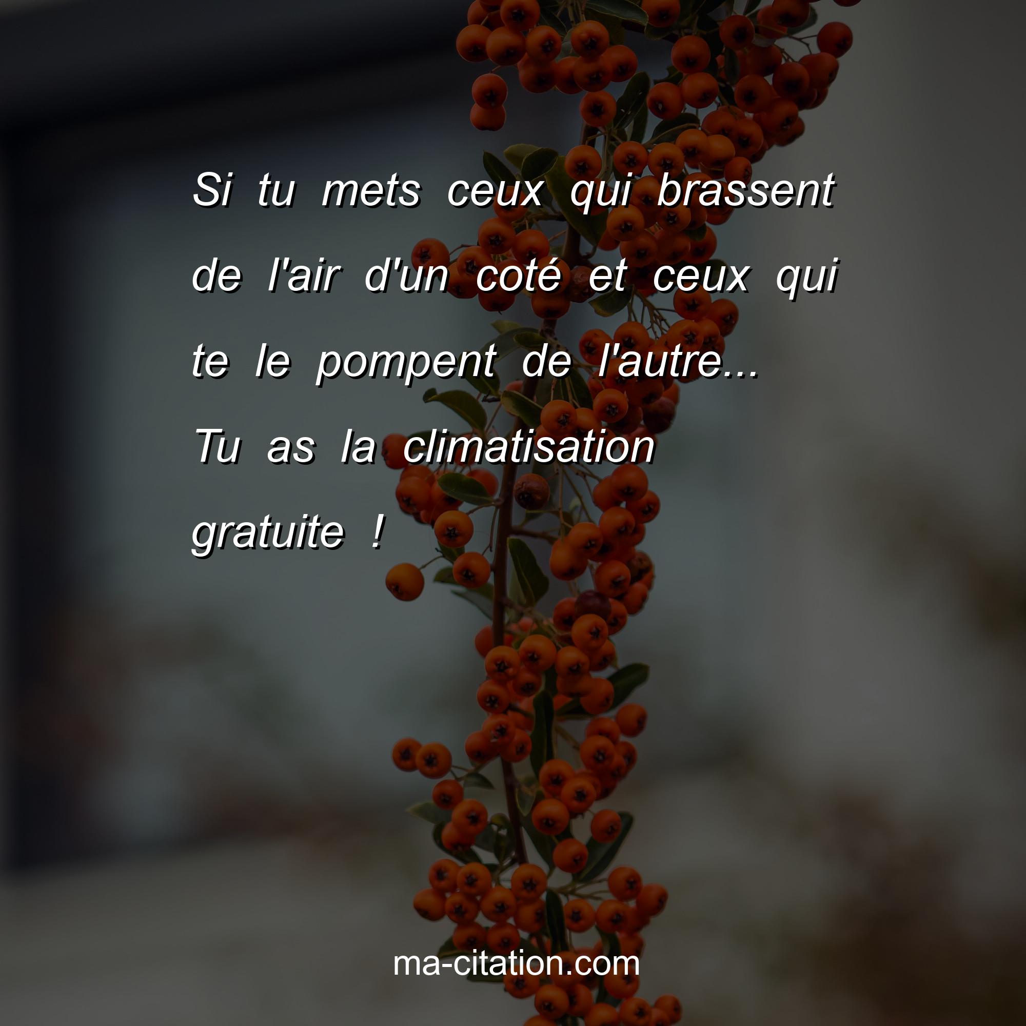 Citation drôles :Si tu mets ceux qui brassent de l'air d'un coté et ceux qui te le pompent de l'autre... Tu as la climatisation gratuite !