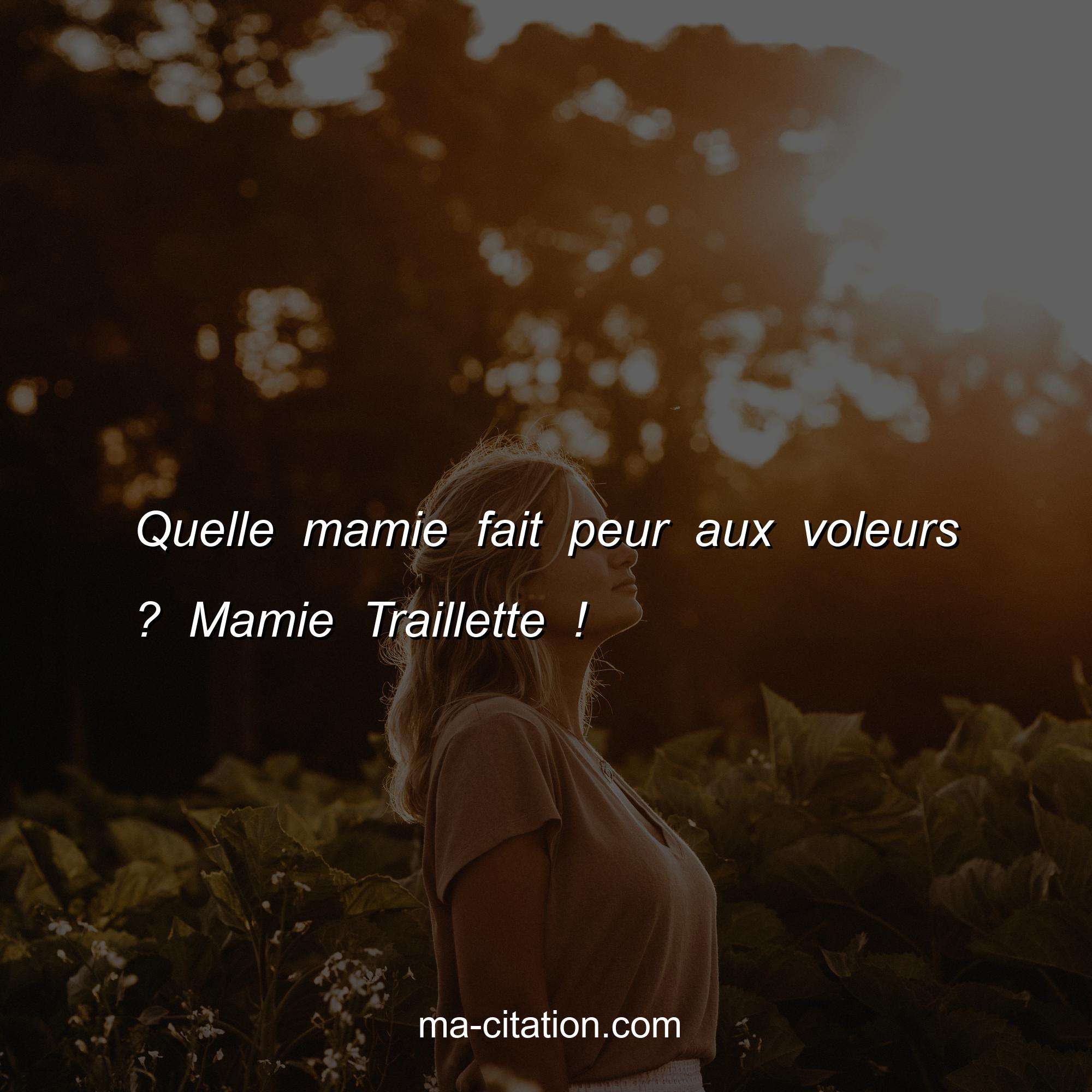 Citation drôles :Quelle mamie fait peur aux voleurs ? Mamie Traillette !