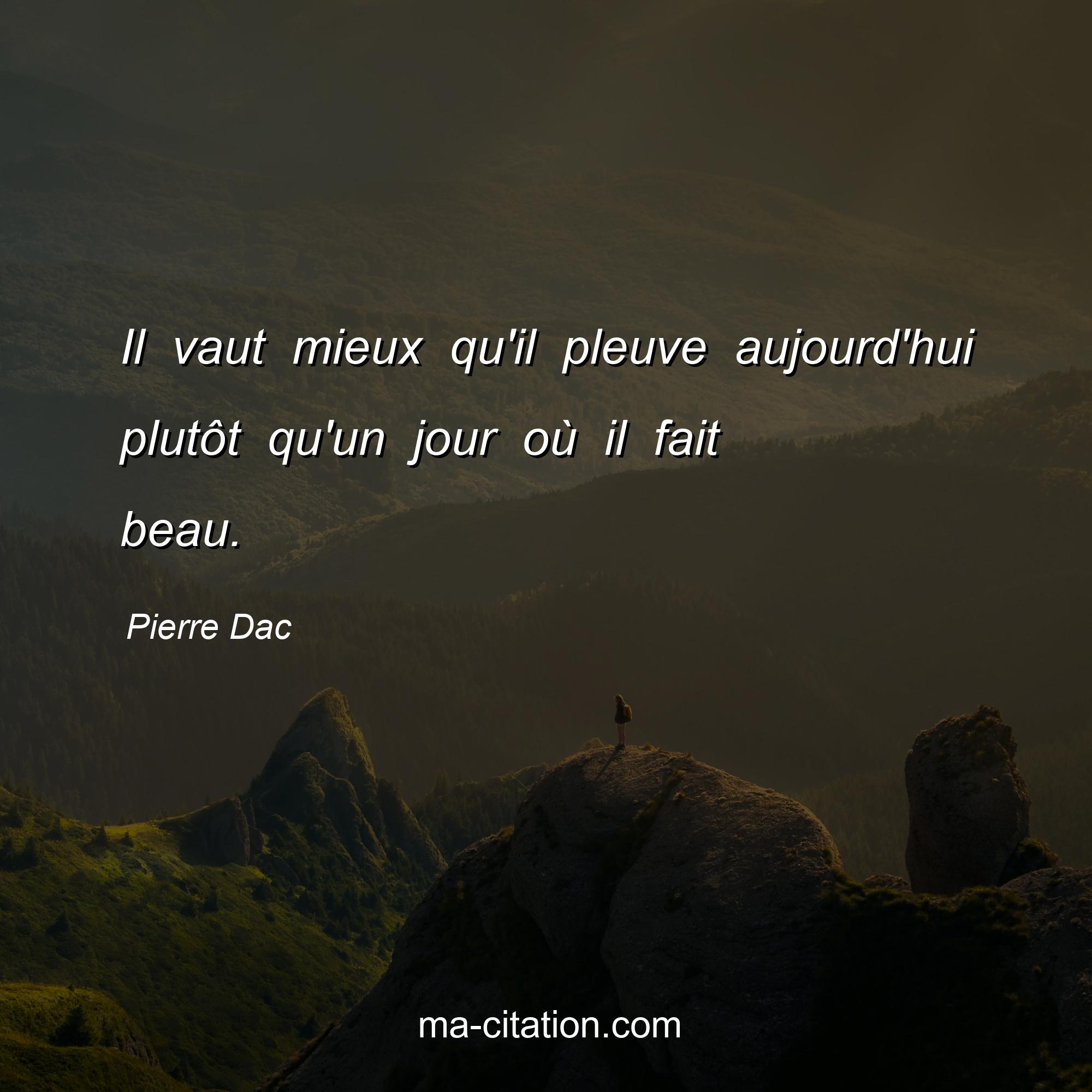 Pierre Dac est l'auteur de la citation drôles "Il vaut mieux qu'il pleuve aujourd'hui plutôt qu'un jour où il fait beau.".