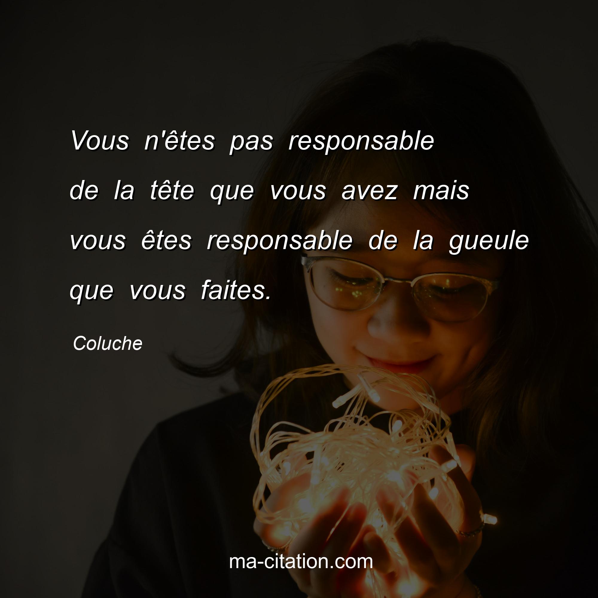 Citation drôles de Coluche :Vous n'êtes pas responsable de la tête que vous avez mais vous êtes responsable de la gueule que vous faites.