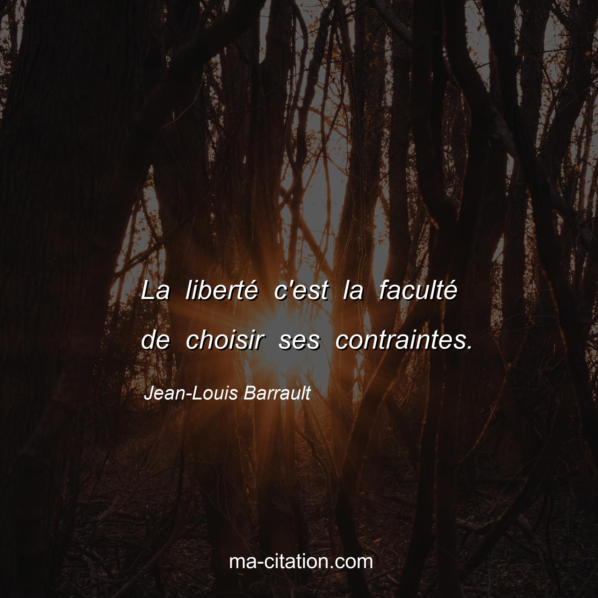 Jean-Louis Barrault est l'auteur de la citation sur la liberté "La liberté c'est la faculté de choisir ses contraintes.".