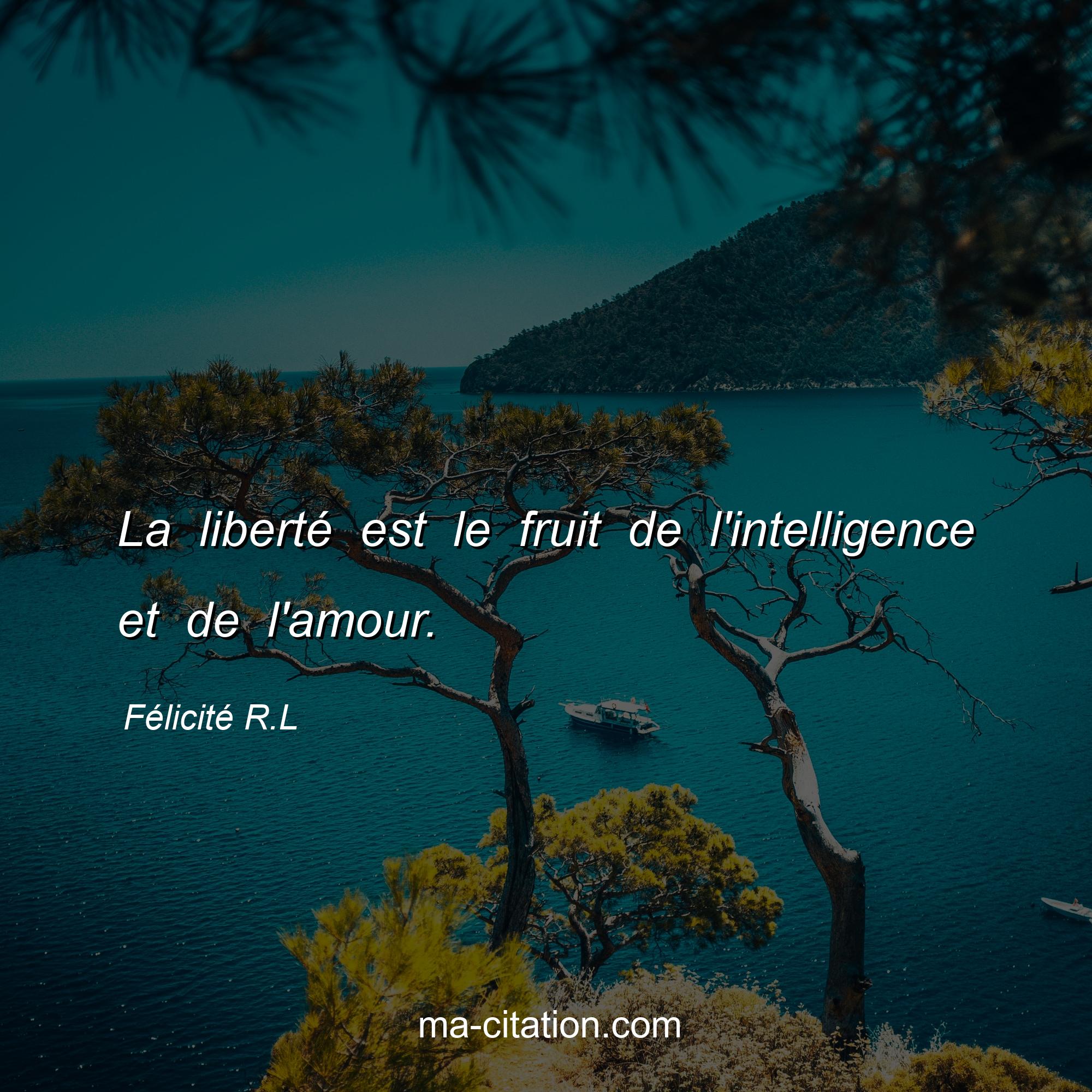 Félicité R.L est l'auteur de la citation sur la liberté "La liberté est le fruit de l'intelligence et de l'amour.".