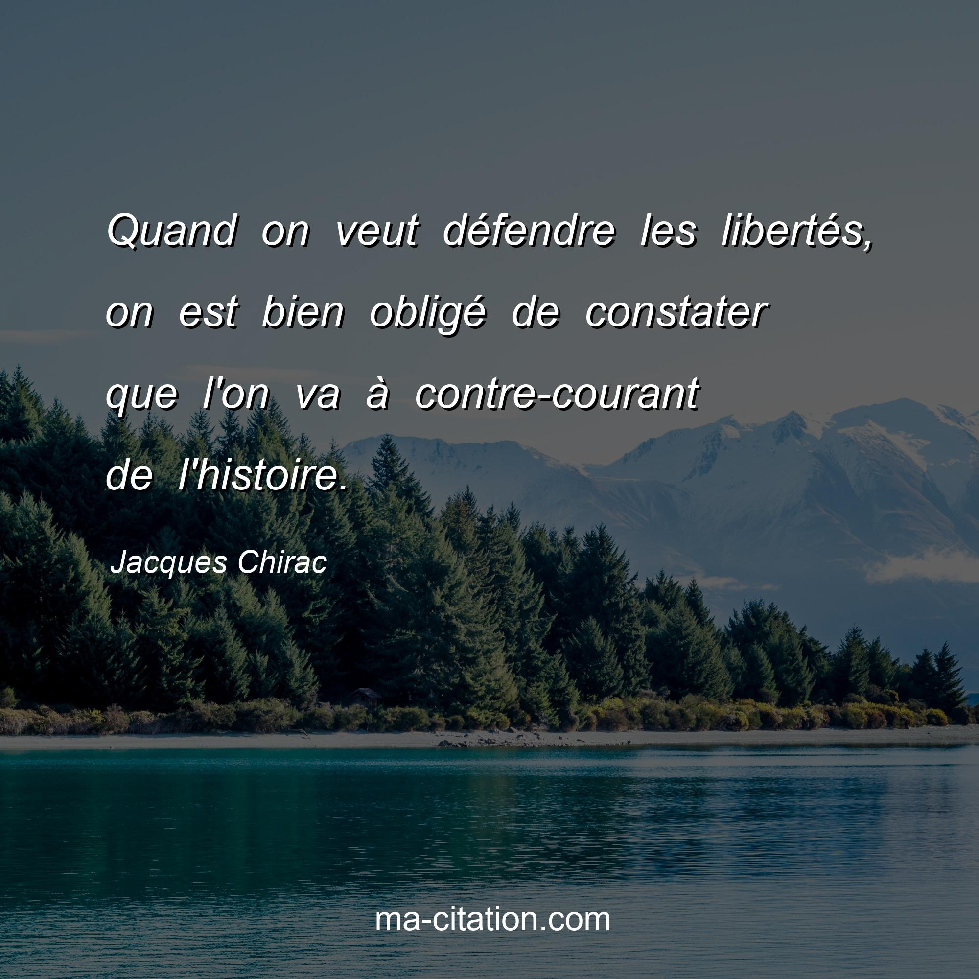 Jacques Chirac est l'auteur de la citation sur la liberté "Quand on veut défendre les libertés, on est bien obligé de constater que l'on va à contre-courant de l'histoire.".