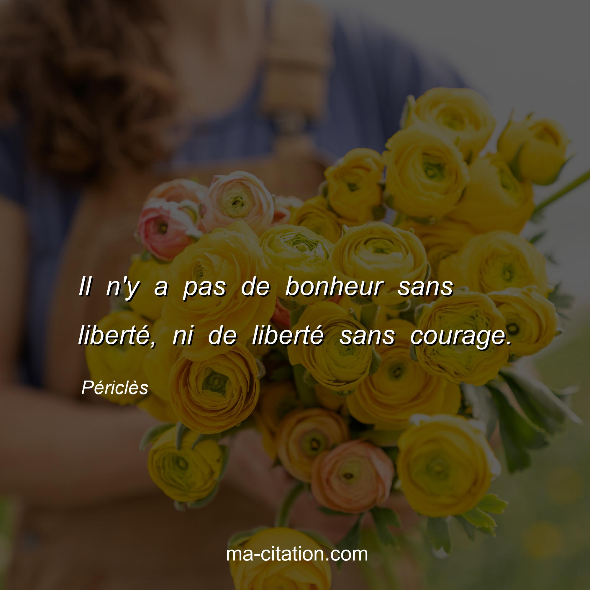 Citation sur la liberté de Périclès :Il n'y a pas de bonheur sans liberté, ni de liberté sans courage.