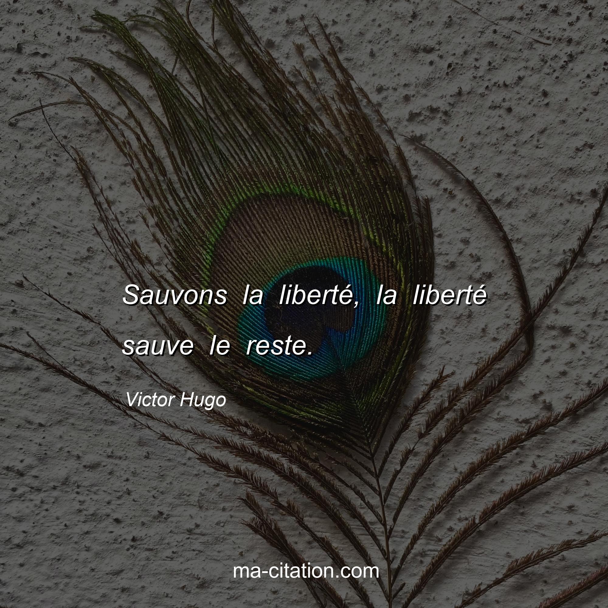 Citation sur la liberté de Victor Hugo :Sauvons la liberté, la liberté sauve le reste.
