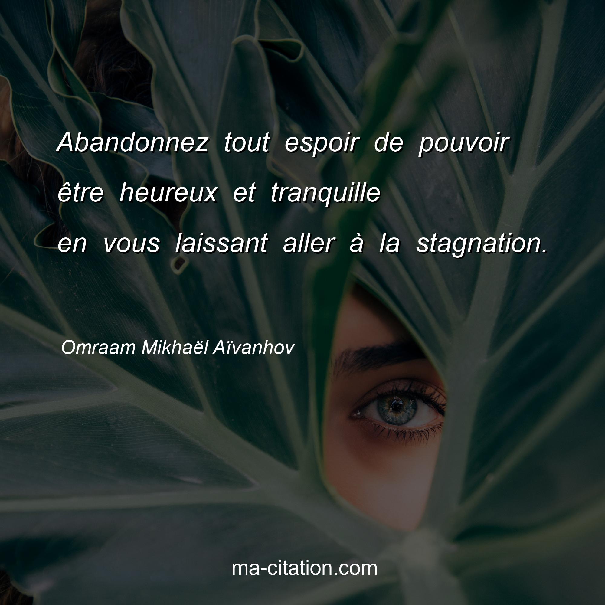 Citation sur la motivation d'Omraam Mikhaël Aïvanhov :Abandonnez tout espoir de pouvoir être heureux et tranquille en vous laissant aller à la stagnation.