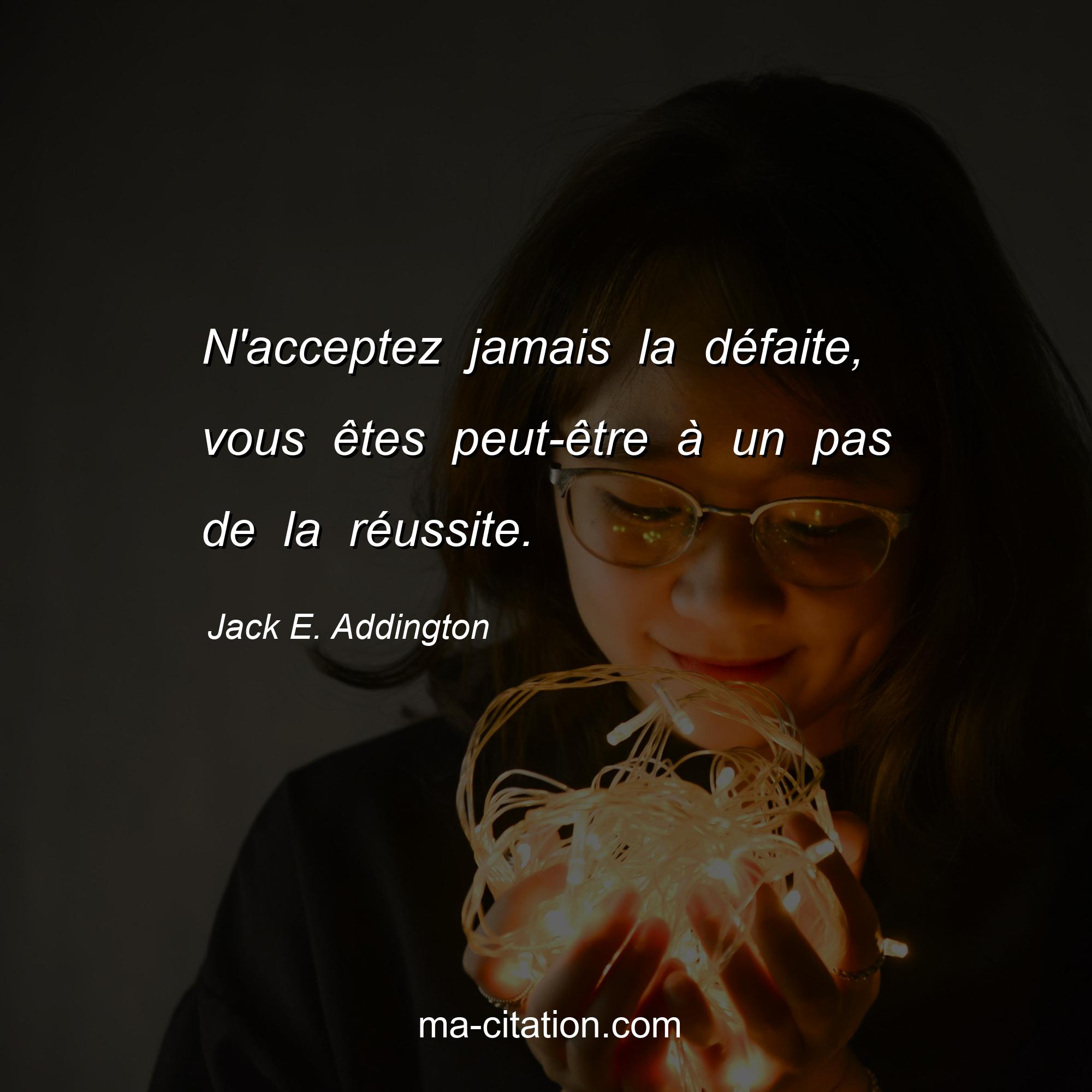 Jack E. Addington est l'auteur de la citation sur la motivation "N'acceptez jamais la défaite, vous êtes peut-être à un pas de la réussite.".
