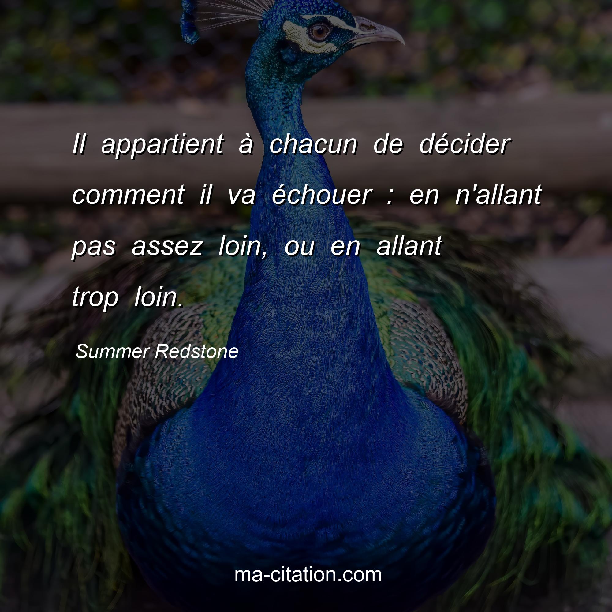 Citation sur la motivation de Summer Redstone :Il appartient à chacun de décider comment il va échouer : en n'allant pas assez loin, ou en allant trop loin.