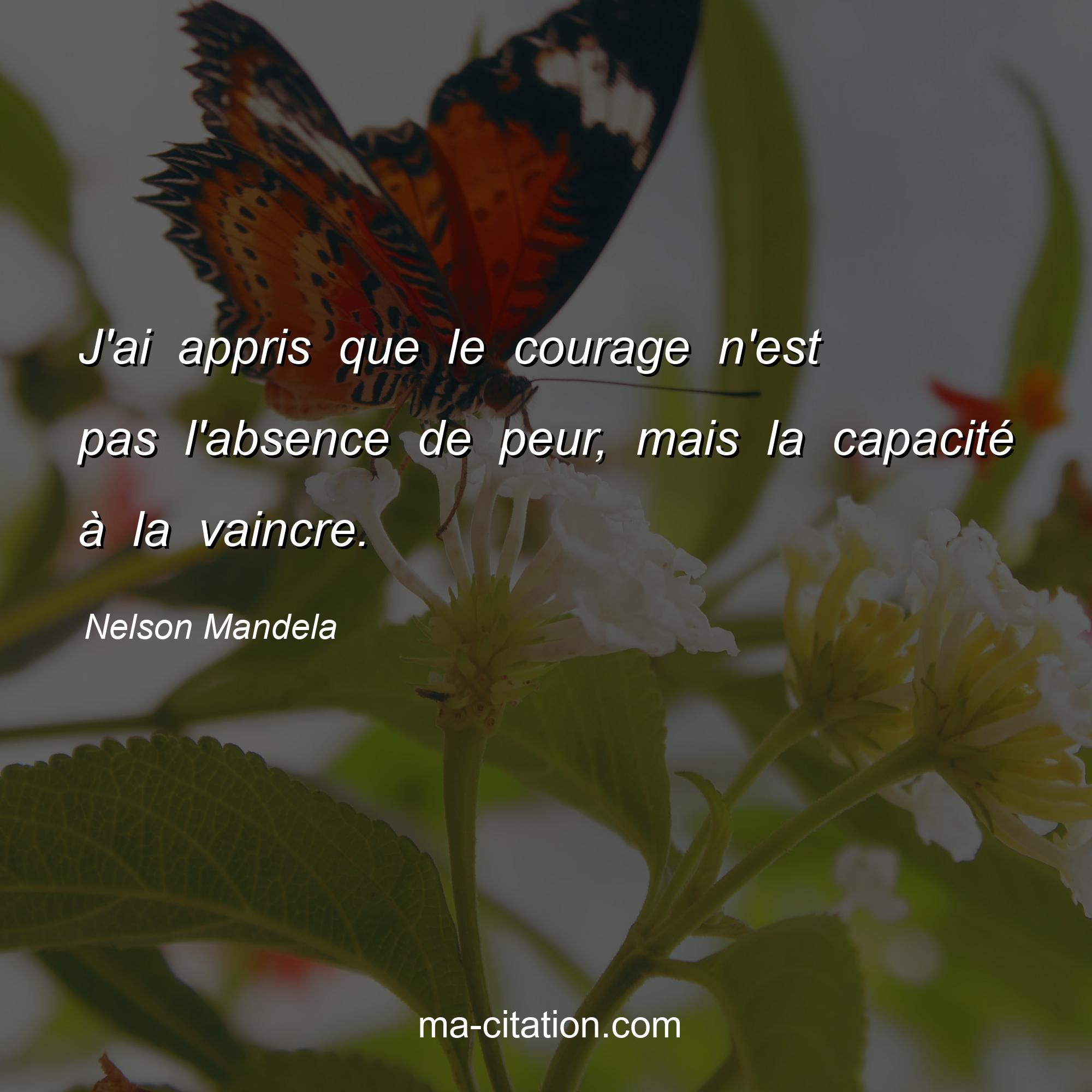 J'ai appris que le courage n'est pas l'absence de peur, mais la capacité à la vaincre.