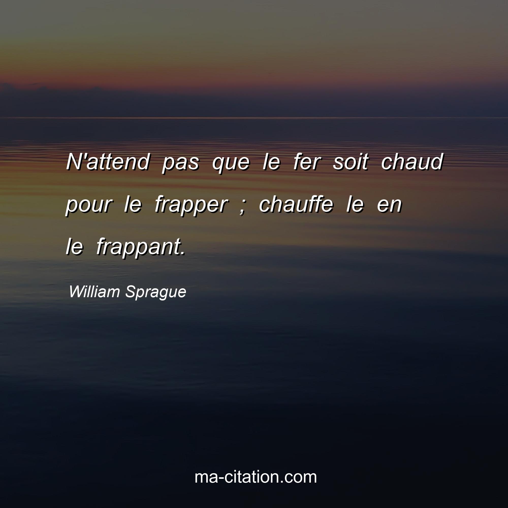 William Sprague est l'auteur de la citation sur la motivation "N'attend pas que le fer soit chaud pour le frapper ; chauffe le en le frappant.".