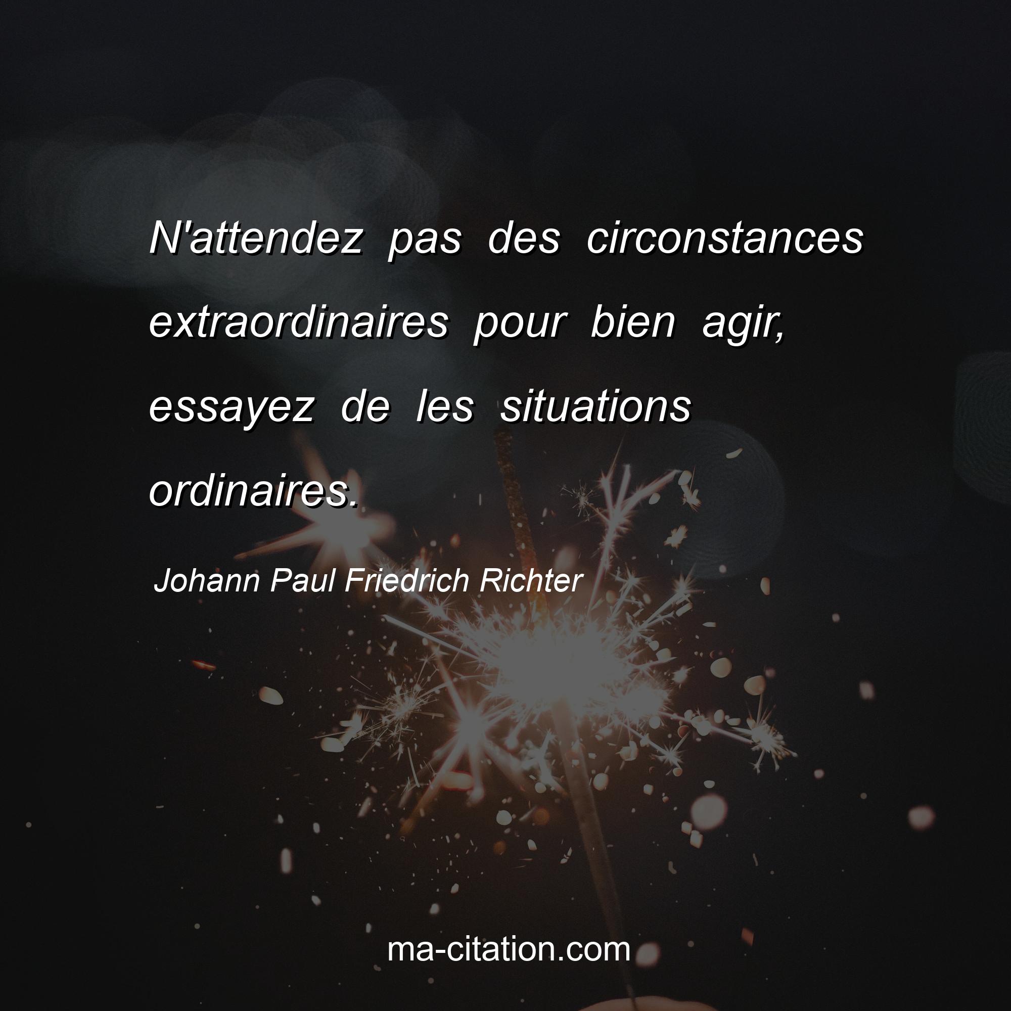 Citation sur la motivation de Johann Paul Friedrich Richter :N'attendez pas des circonstances extraordinaires pour bien agir, essayez de les situations ordinaires.