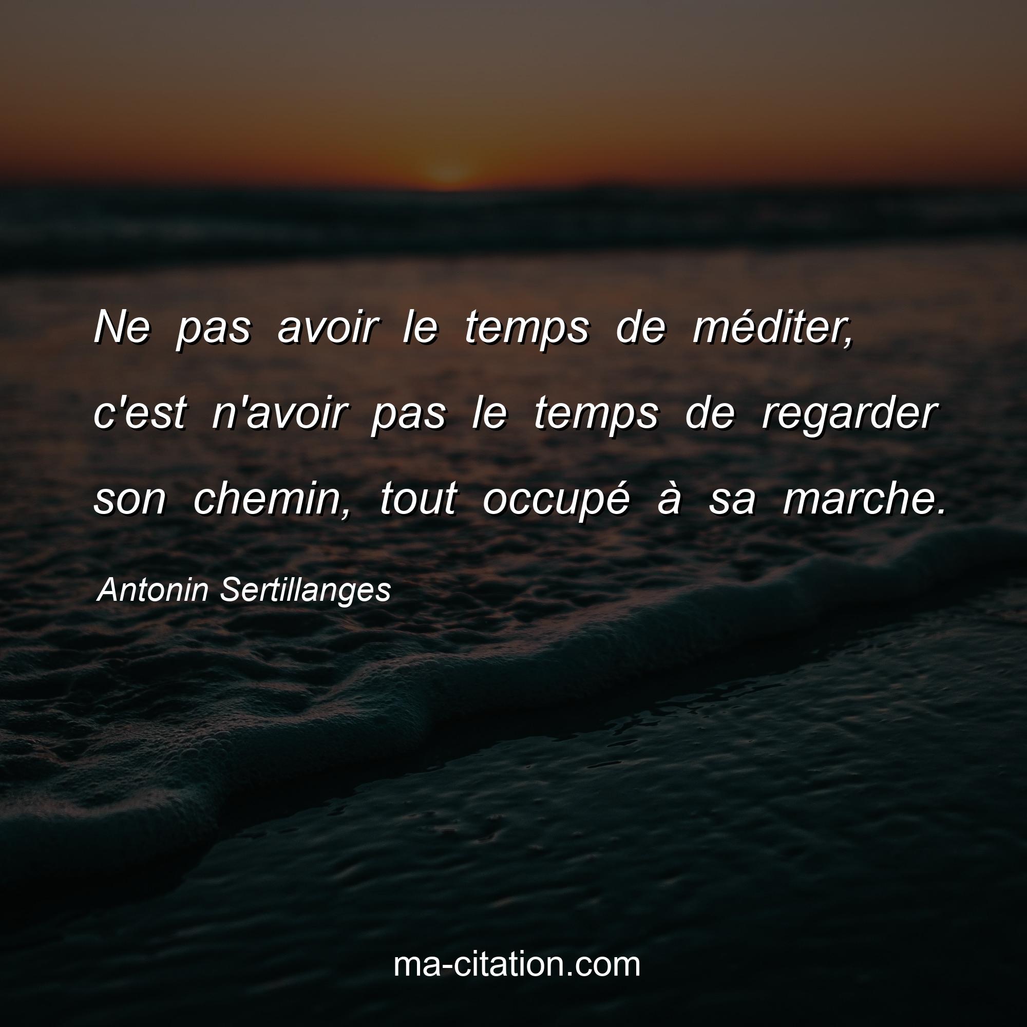 Citation sur la motivation d'Antonin Sertillanges :Ne pas avoir le temps de méditer, c'est n'avoir pas le temps de regarder son chemin, tout occupé à sa marche.