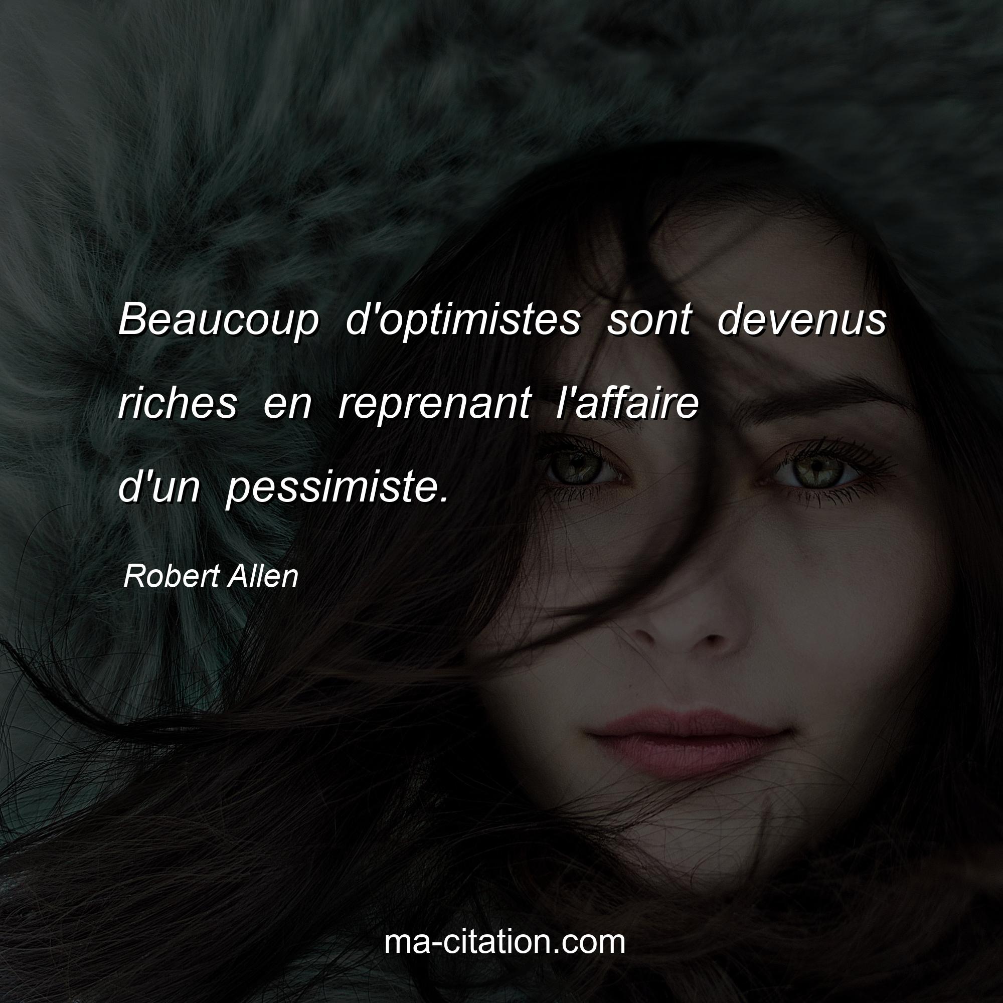 Citation sur la motivation de Robert Allen :Beaucoup d'optimistes sont devenus riches en reprenant l'affaire d'un pessimiste.