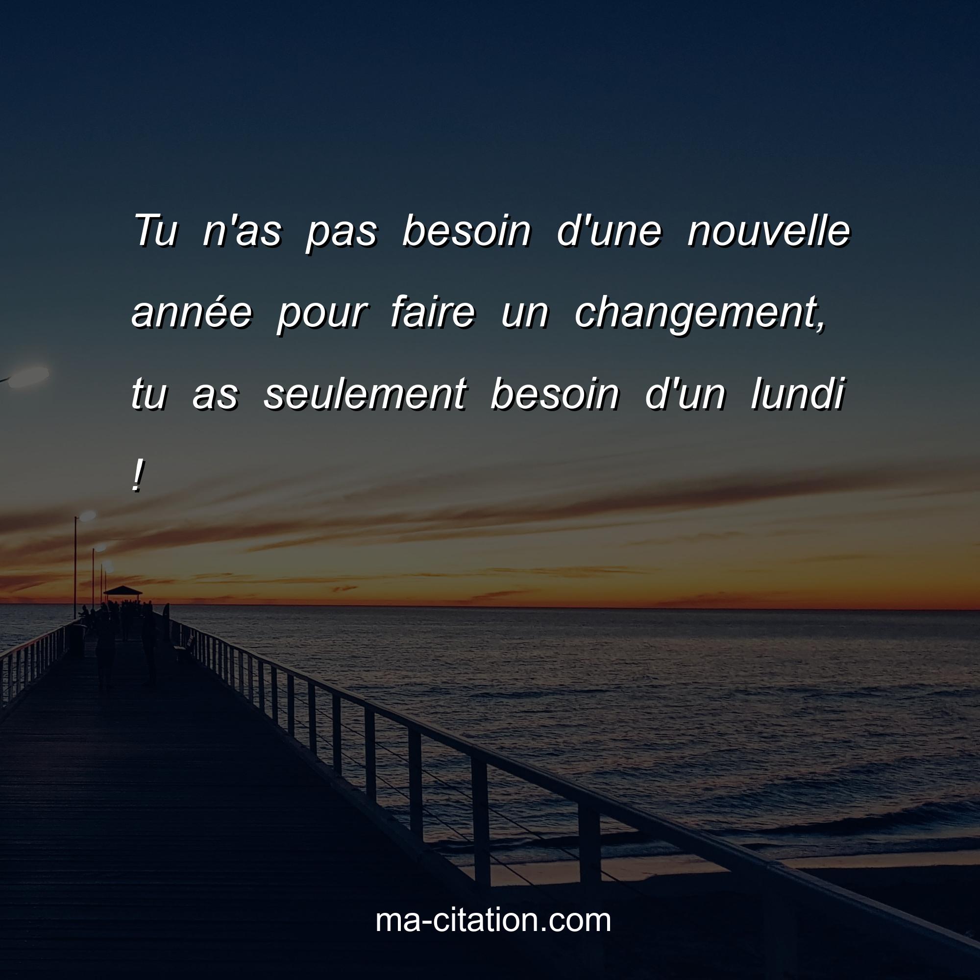 Citation sur la motivation :Tu n'as pas besoin d'une nouvelle année pour faire un changement, tu as seulement besoin d'un lundi !